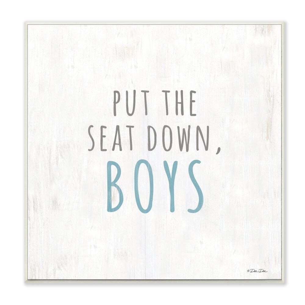 Stupell Black White and Blue Put the Seat Down Boys Wood Grain Look Wall Plaque Art, 12x12, Proudly Made in USA - 12 x 12