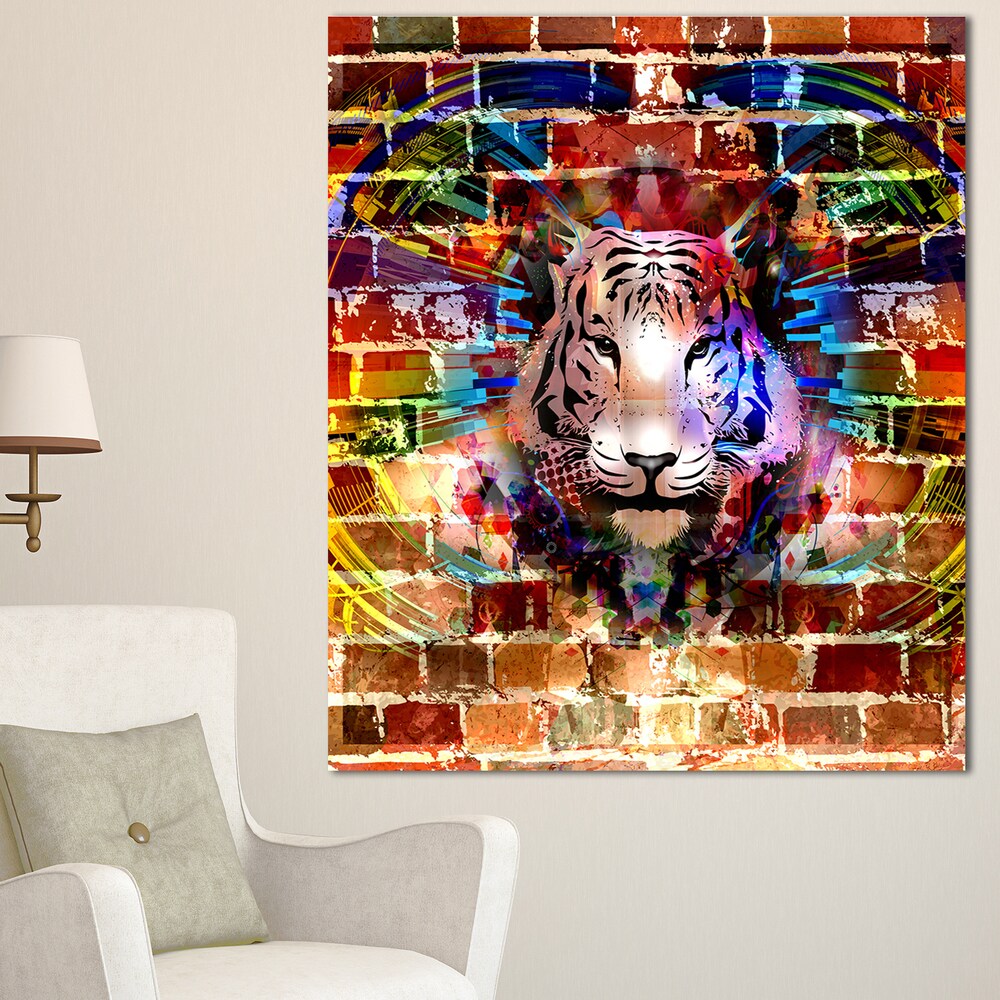 Designart "Tiger over Abstract Brick Design" Abstract Wall Art Canvas