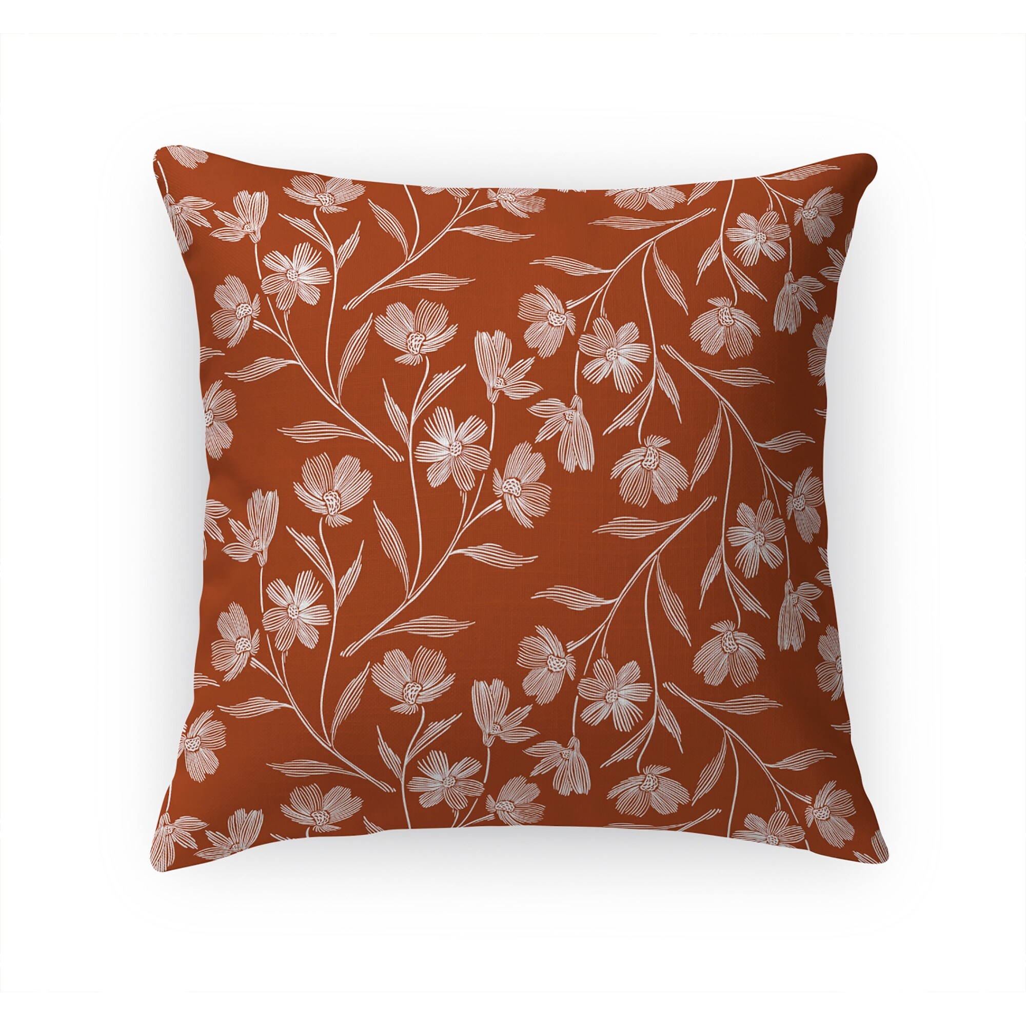 FALLING FLORAL BRICK Linen Throw Pillow By Jenny Lund