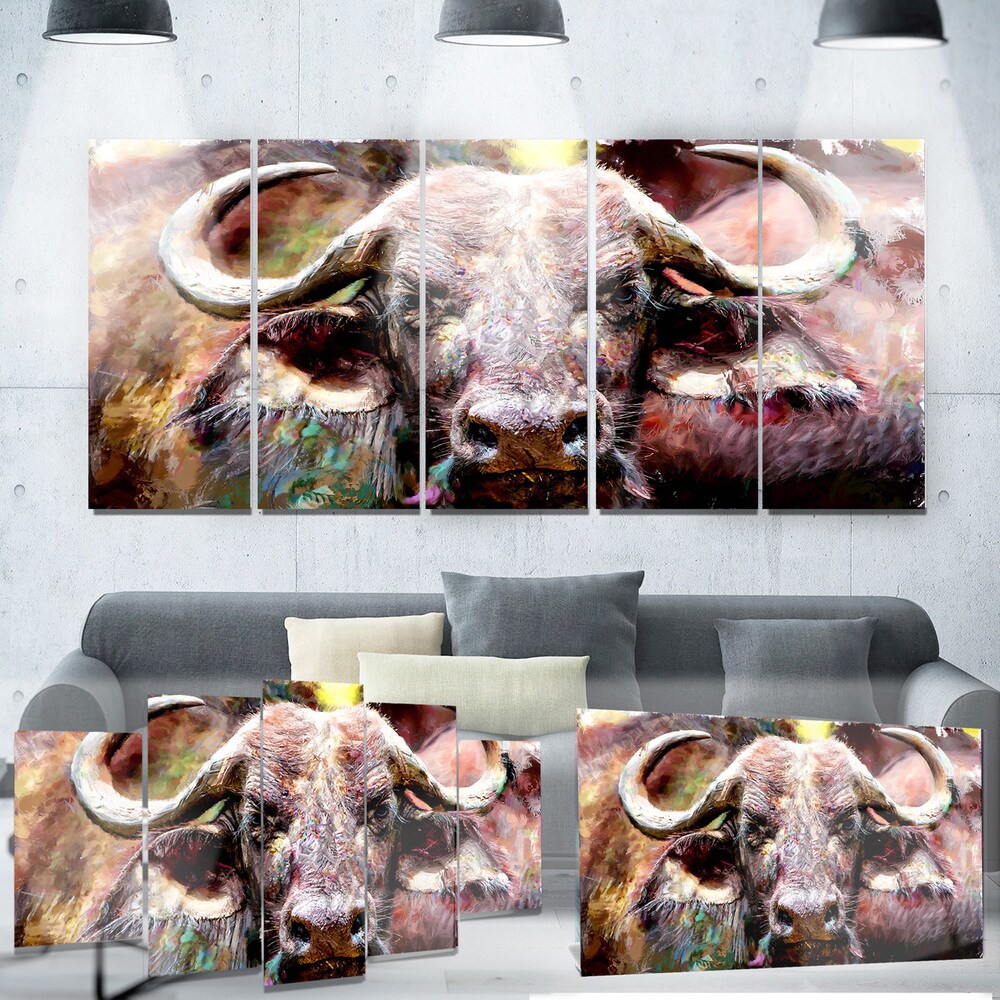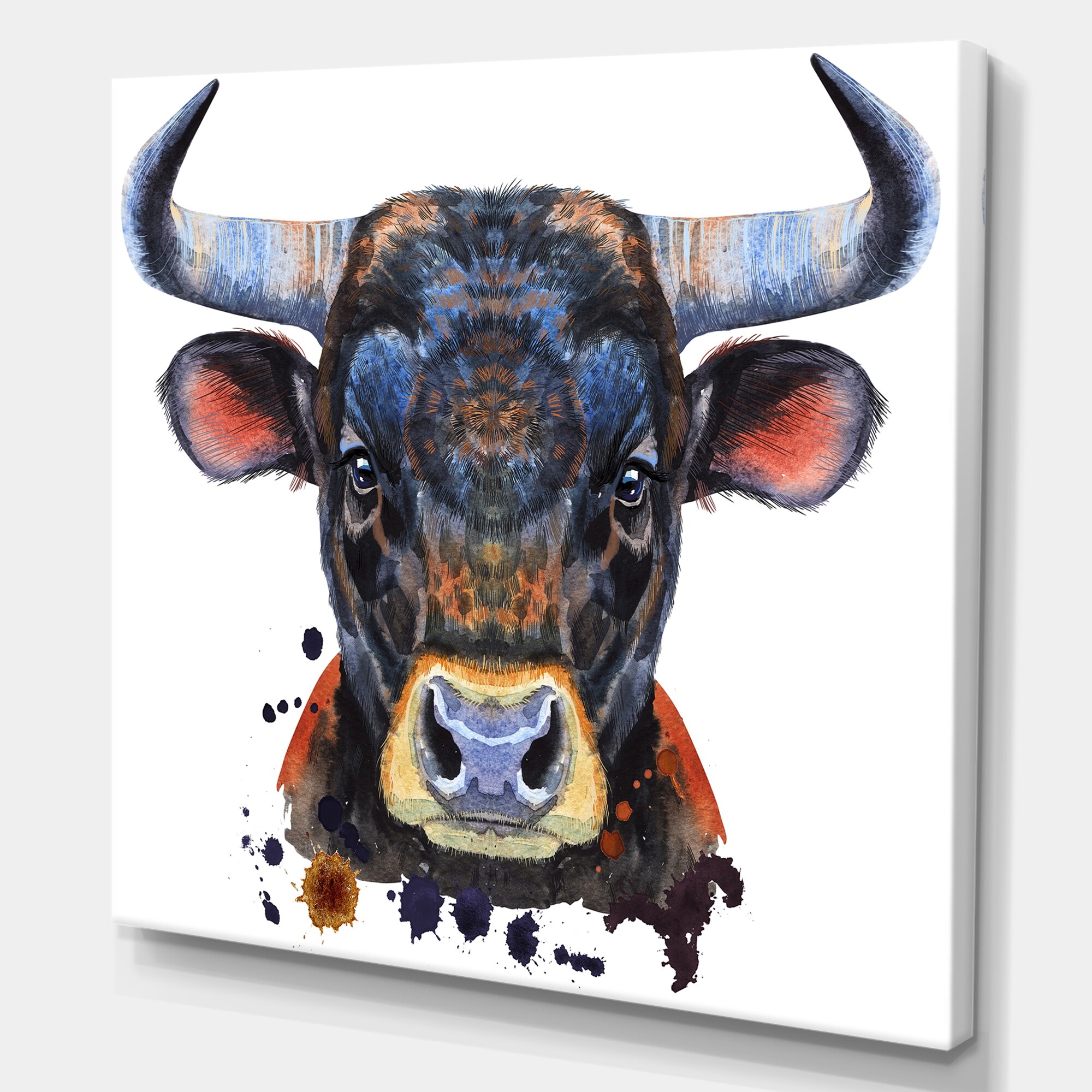 Designart "Watercolor Portrait of Bull I" Animals Canvas Wall Art Print