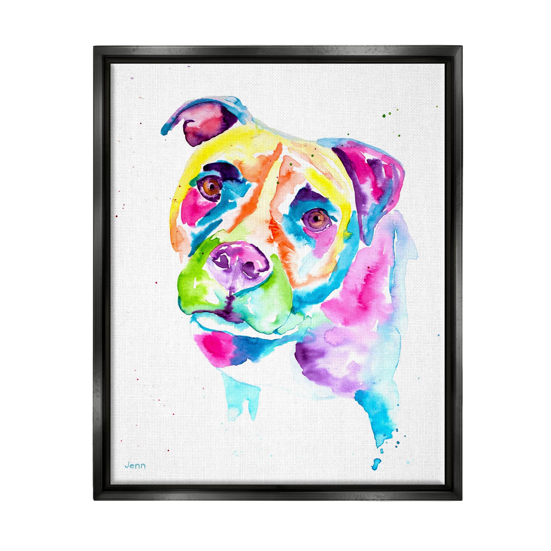 Stupell Industries Pit Bull Casual Watercolor Style Floater Canvas Wall Art by Jen Seeley