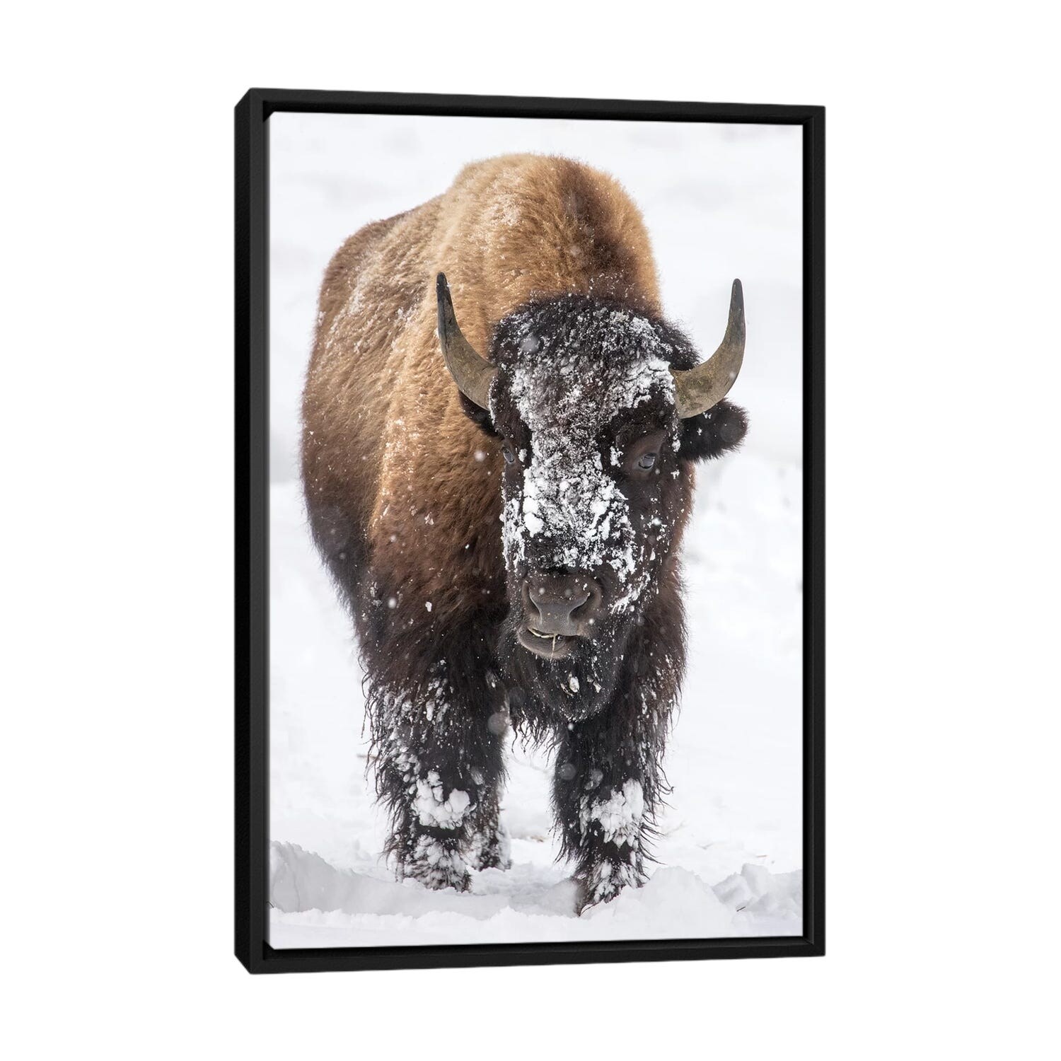 iCanvas "Bison bull with snowy face in Yellowstone National Park, Wyoming, USA" by Chuck Haney Framed Canvas Print