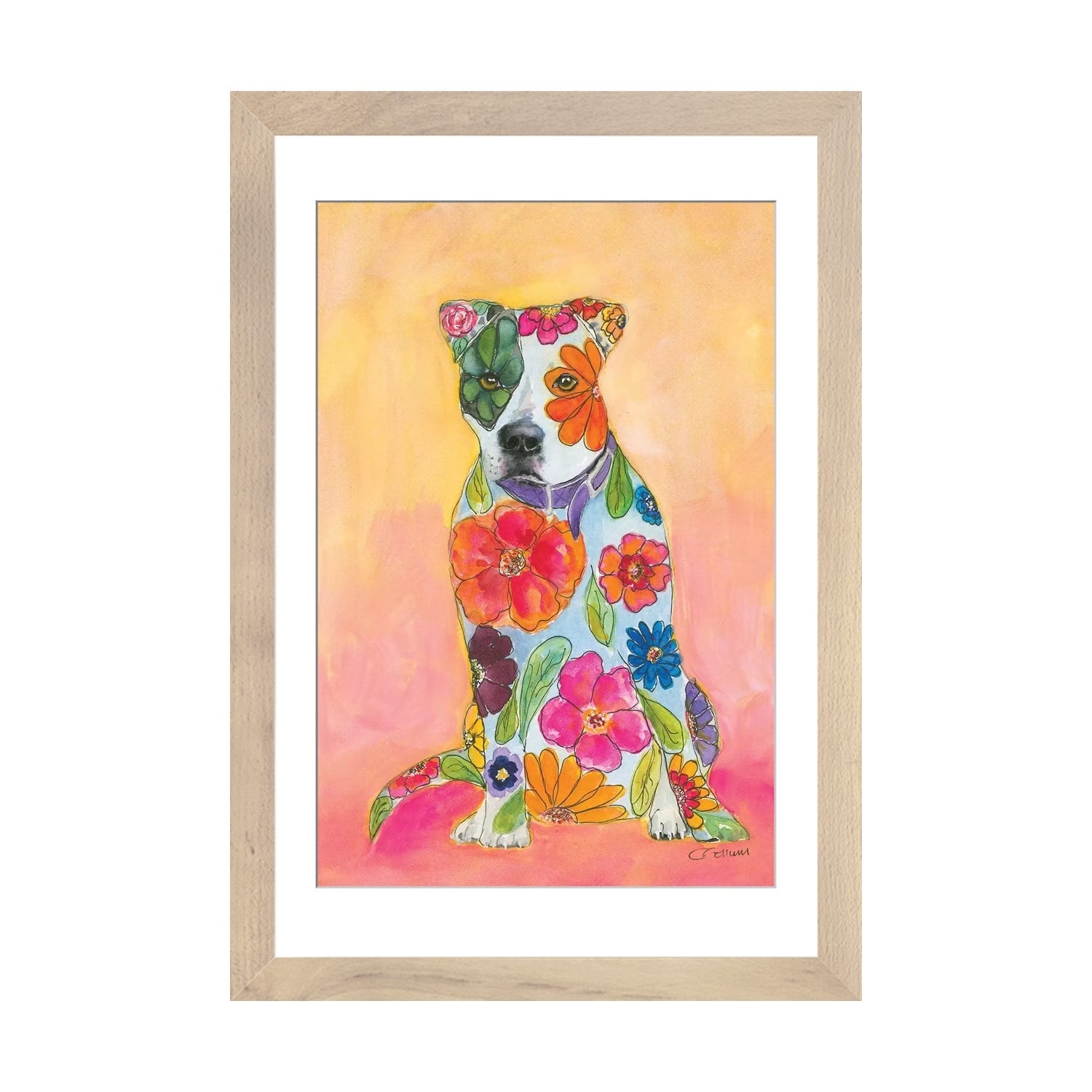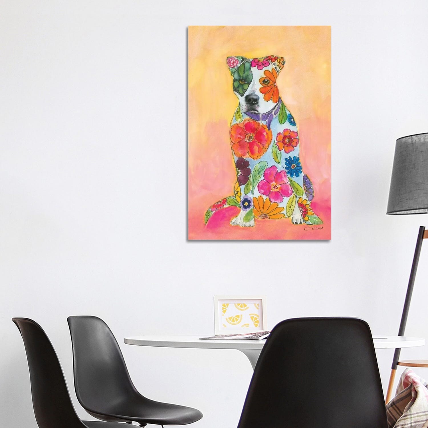 iCanvas "Pit Bull With Flowers" by Hippie Hound Studios Framed Canvas Print