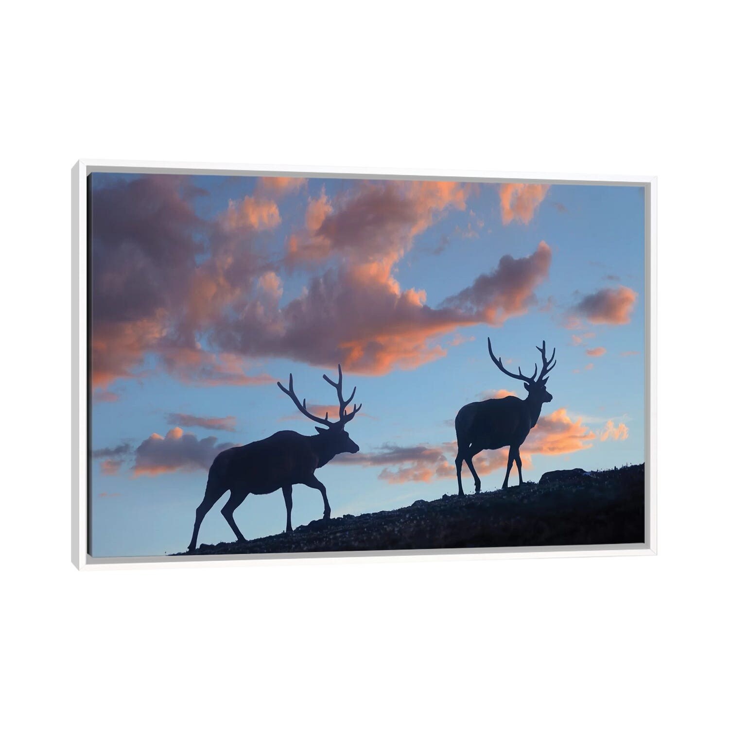 iCanvas "Bull Elk Silhouette At Sunrise, Castle Geyser, Yellowstone National Park, Wyoming" by Jim Zuckerman Framed Canvas Print