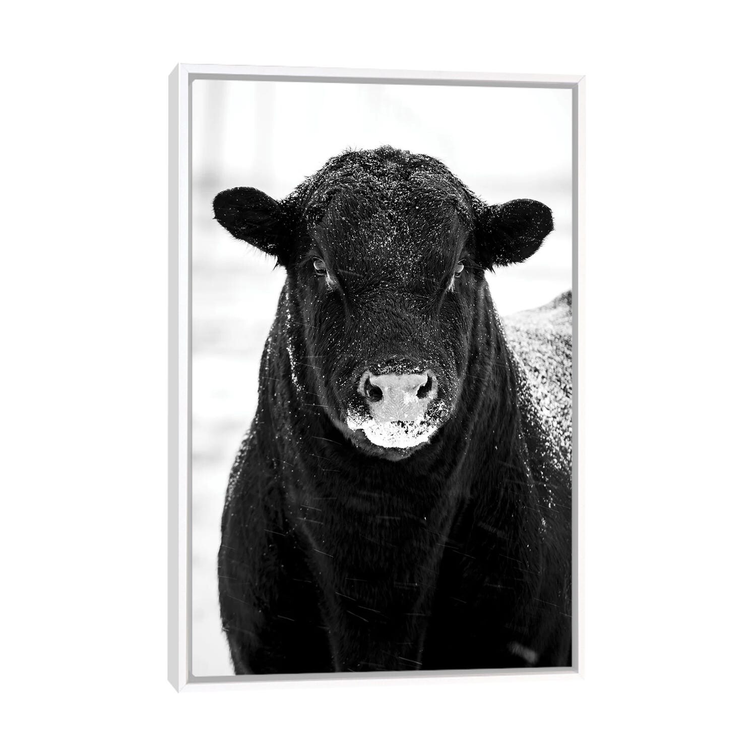 iCanvas "Bull Portrait Snow" by Nik Rave Framed Canvas Print
