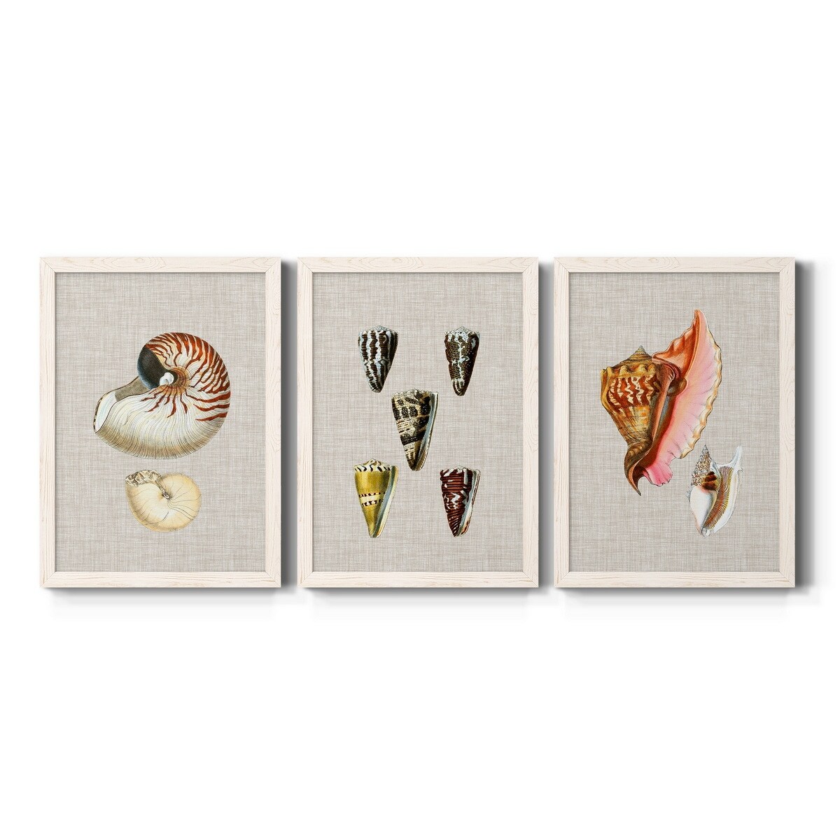 Antique Shells on Linen VII-Premium Framed Canvas - Ready to Hang - Multi-Color