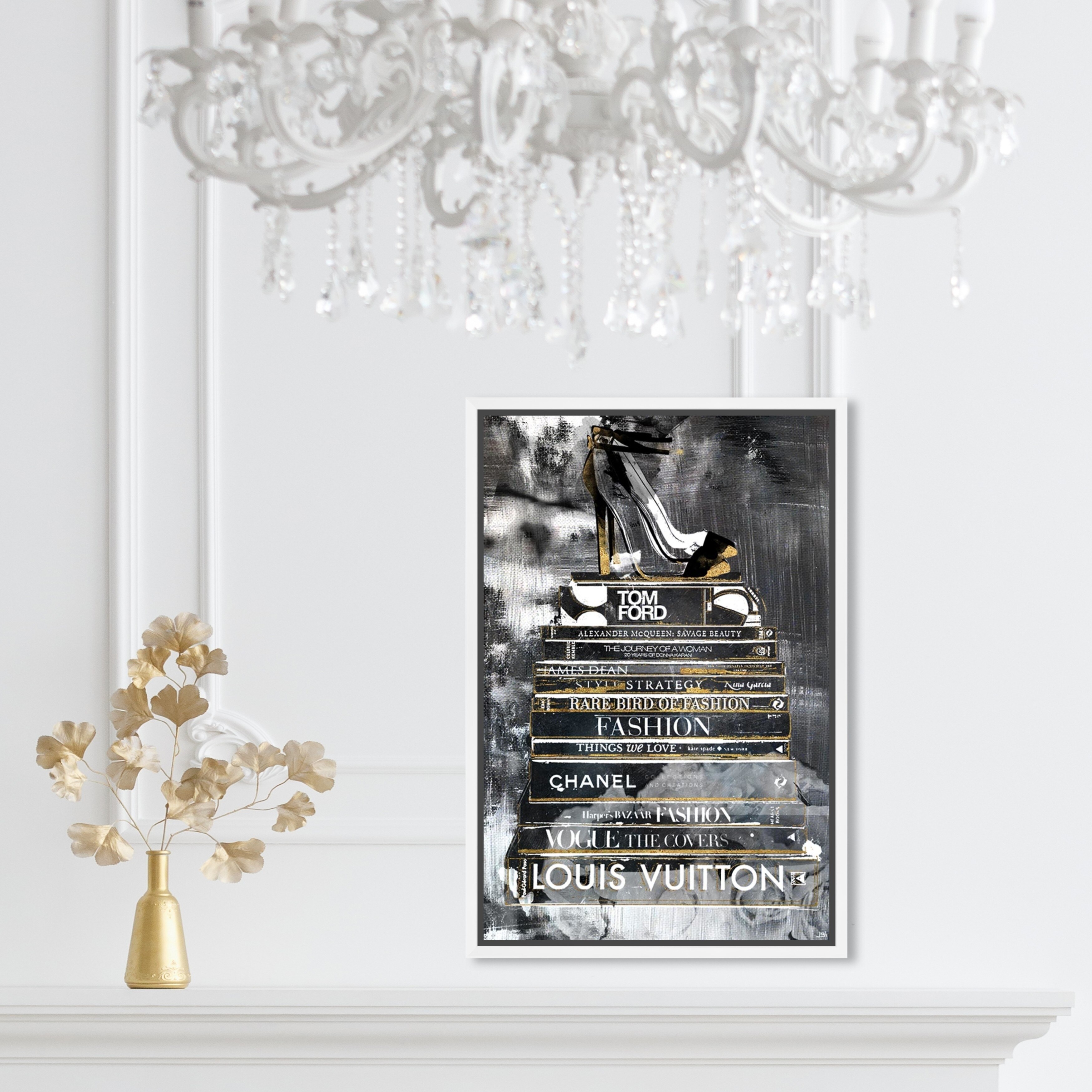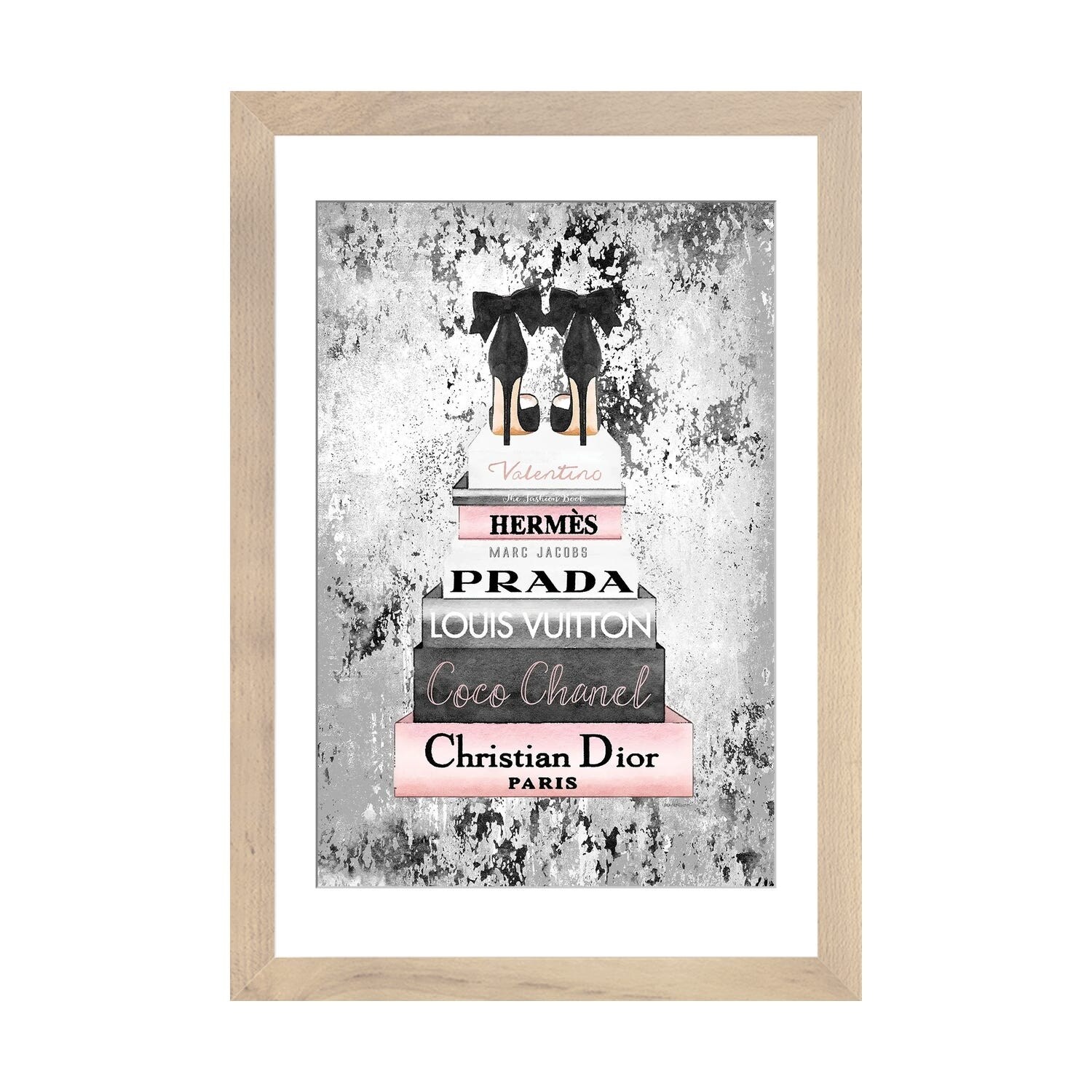 iCanvas "Fashion Bookstack Grey Bow Shoes & Ink" by Amanda Greenwood