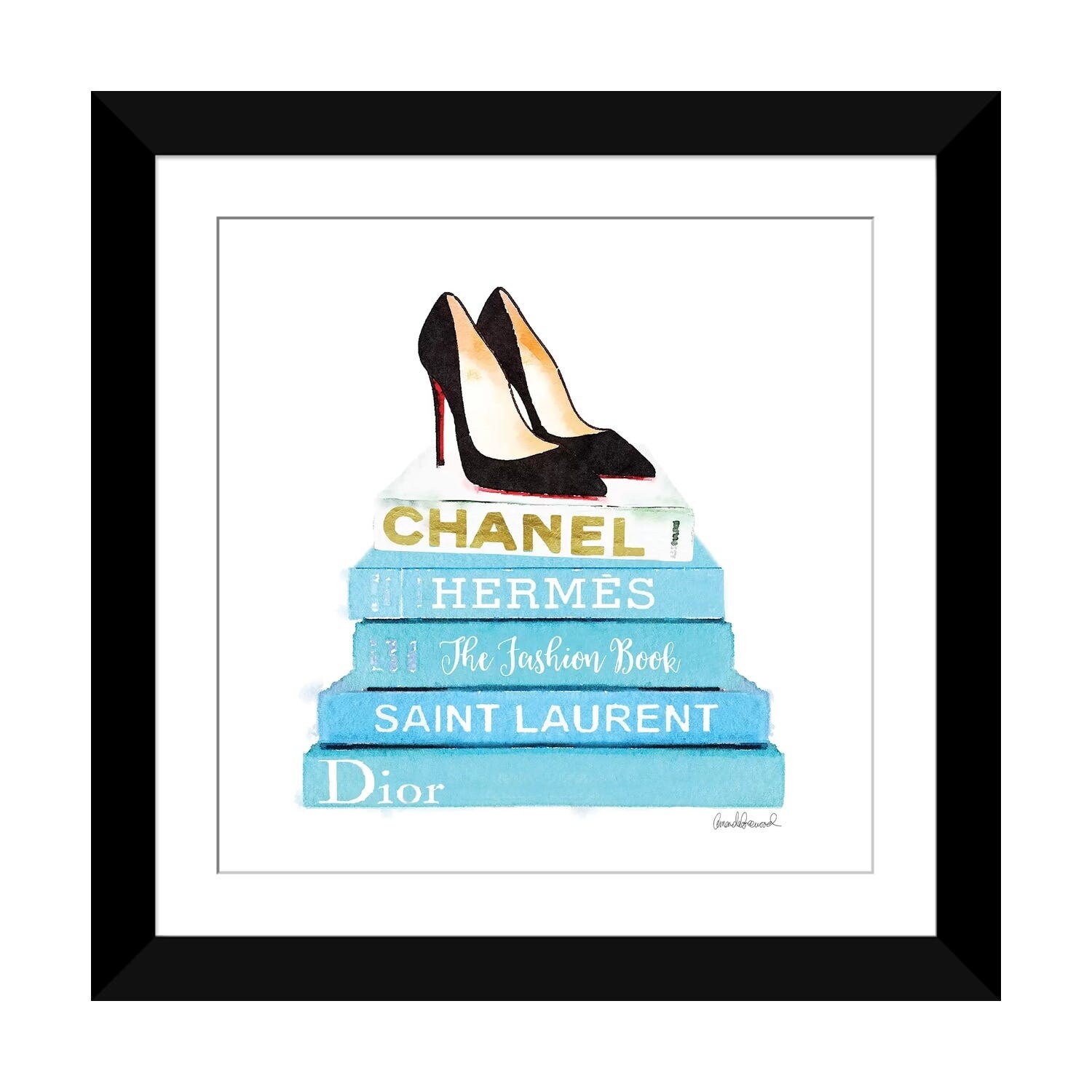 iCanvas "Stack Of Teal Fashion Books With Shoes" by Amanda Greenwood Framed