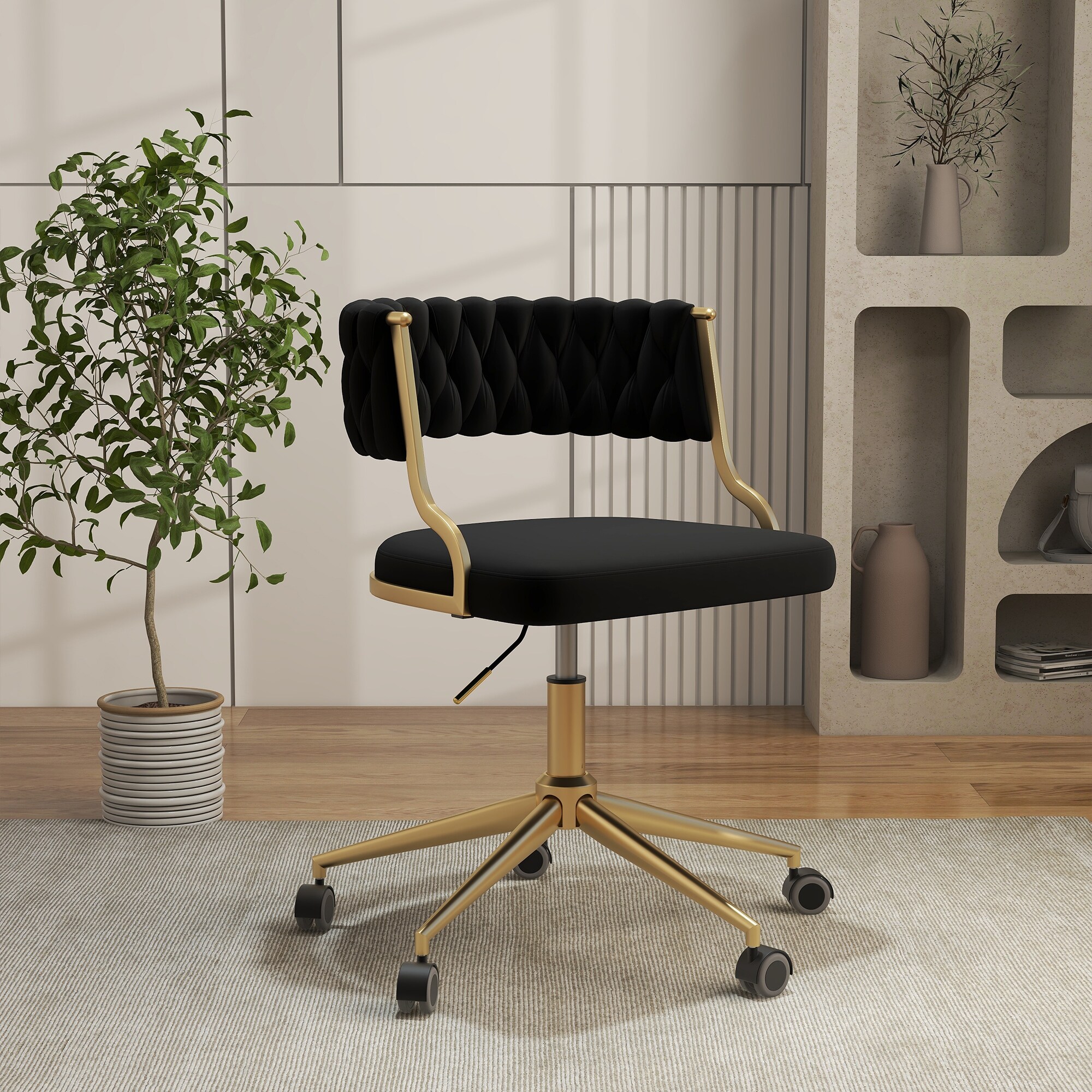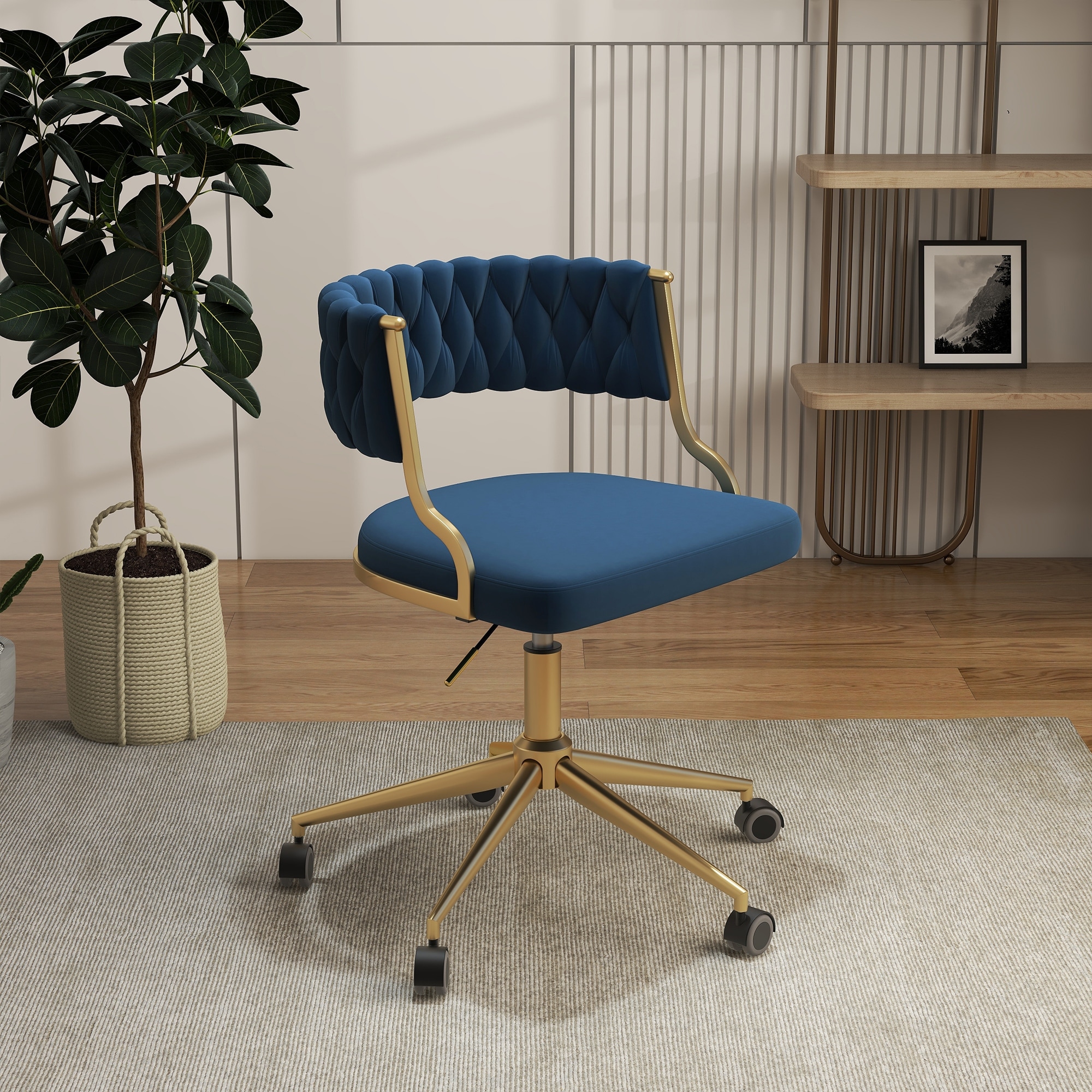 Velvet Office Desk Chair with Hand Woven Backrest