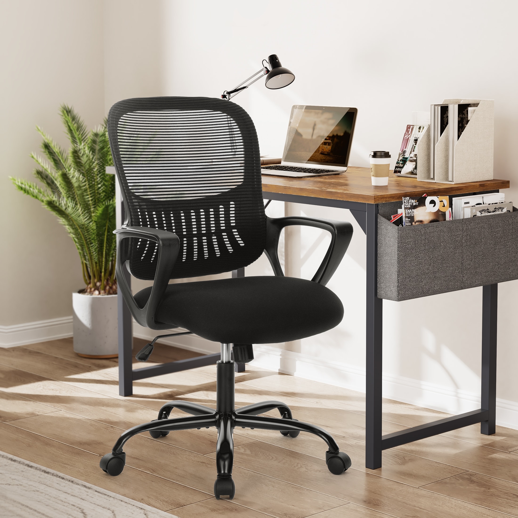 Modern Rolling Desk Chair with Armrests for Home Office, Black