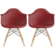 Set of 2 Plastic Accent Modern Designer Dining Chair With Arms Molded Shell Desk Natural Wooden Legs Kitchen Patio