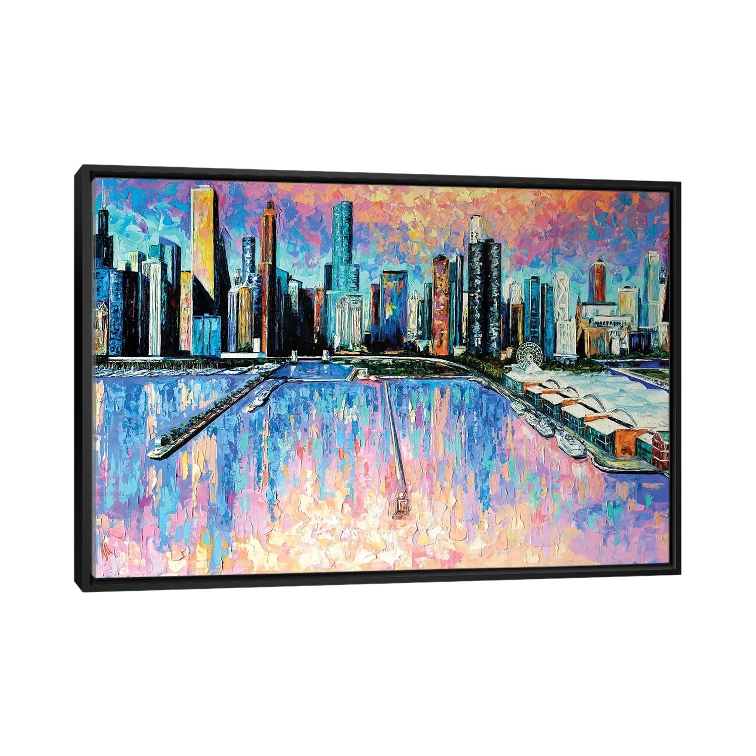 iCanvas "Chicago Skyline" by Natasha Mylius Framed Canvas Print