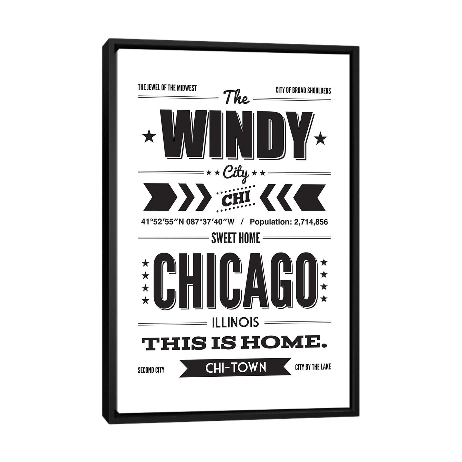 iCanvas "Chicago, This Is Home - Black Ink" by Benton Park Prints Framed