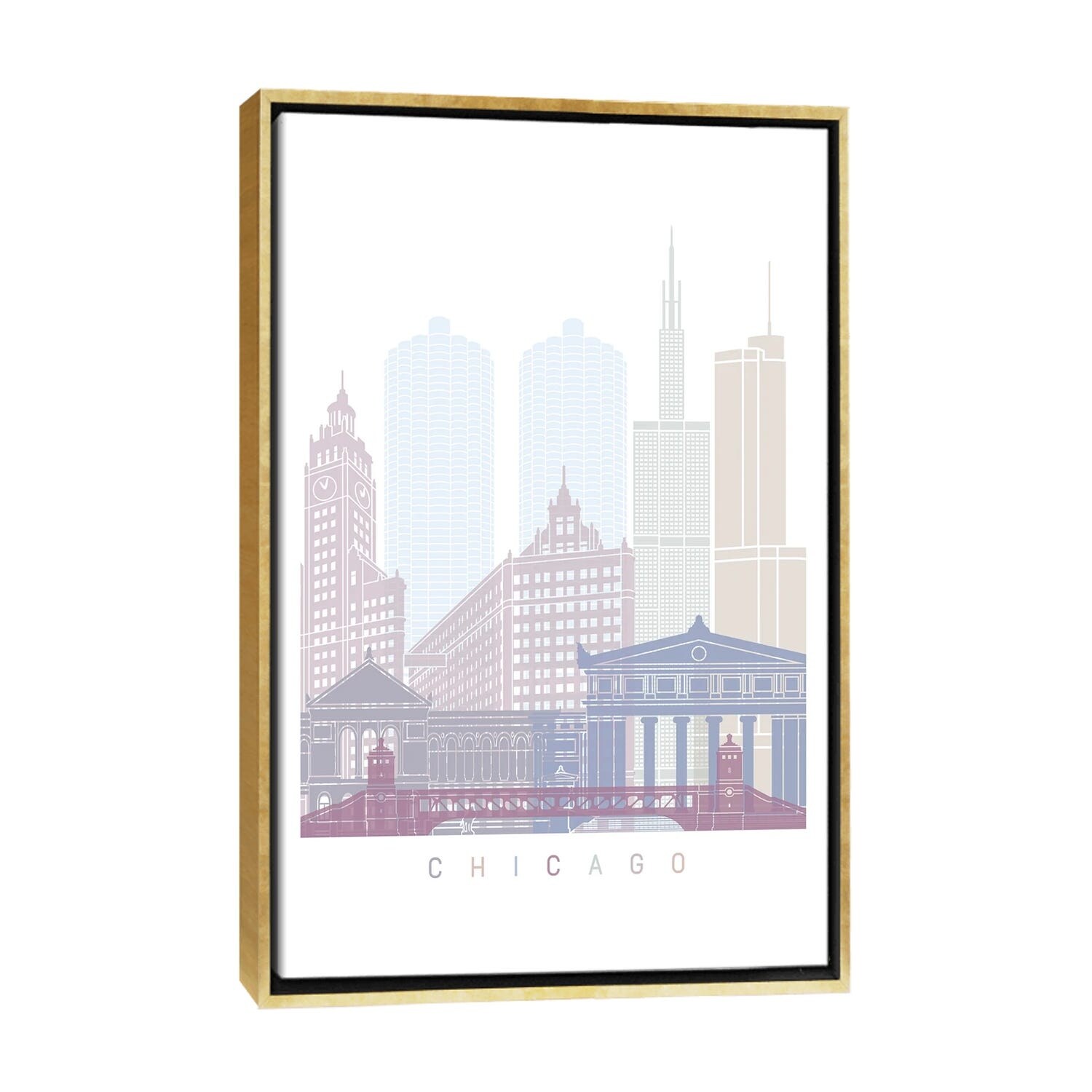 iCanvas "Chicago Skyline Poster Pastel" by Paul Rommer Framed