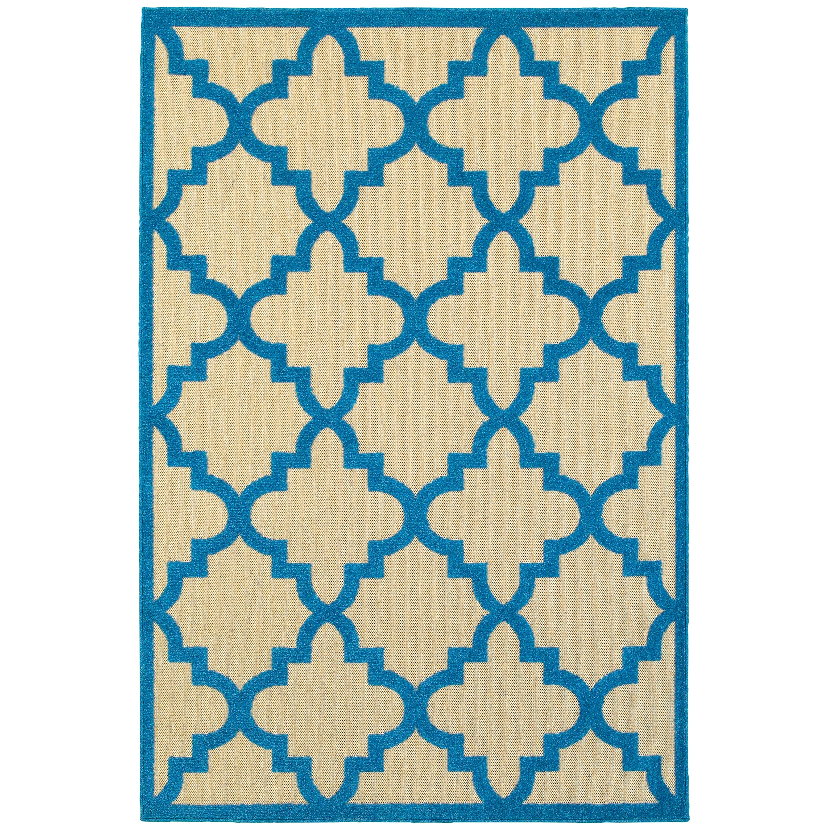 Chicago Sand Blue Geometric Lattice Outdoor Casual Area Rug