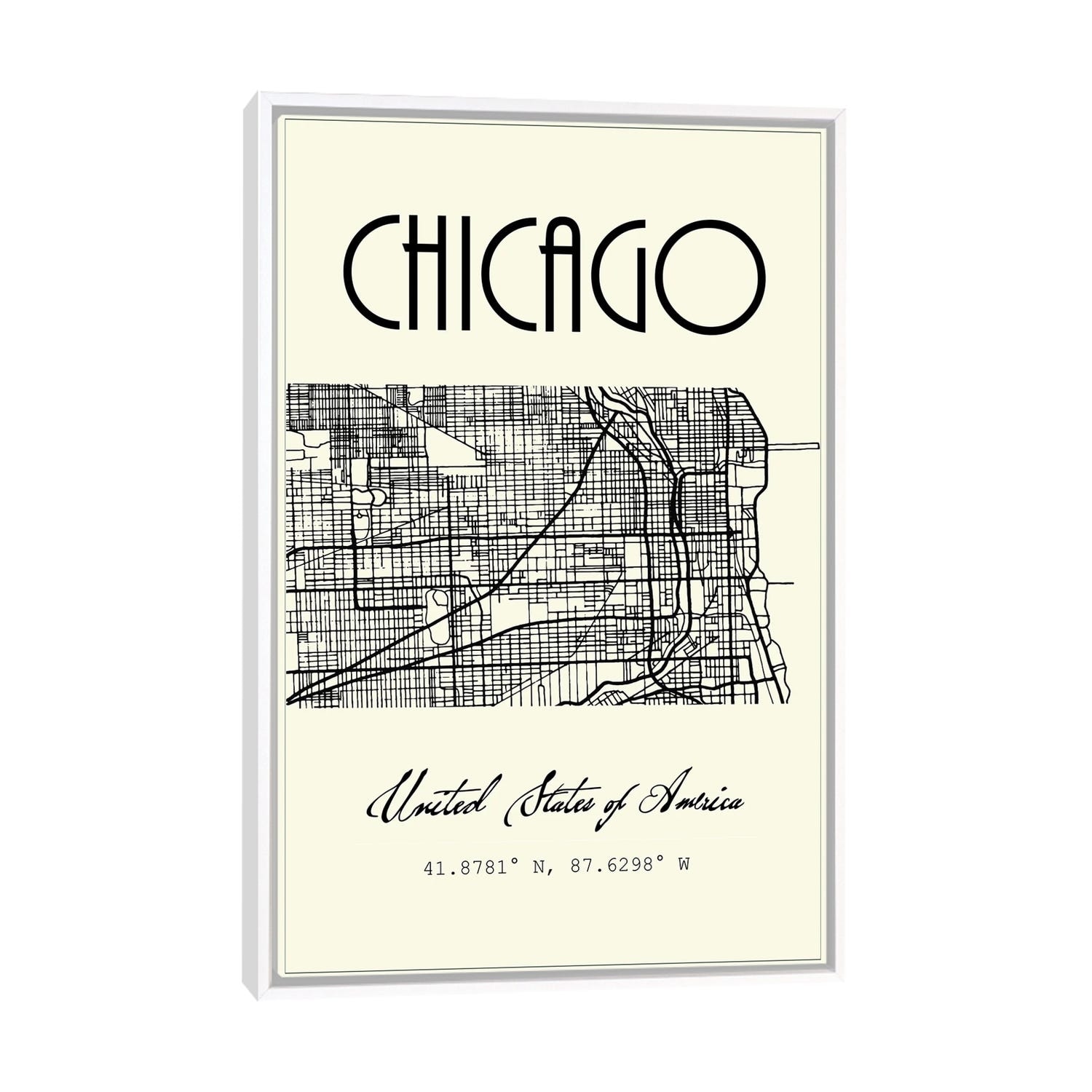 iCanvas "Chicago City Map" by Nordic Print Studio Framed Canvas Print