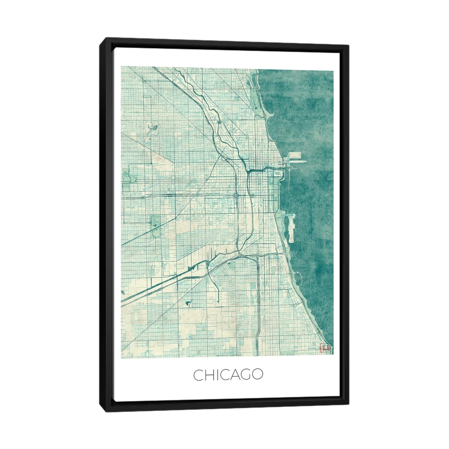 iCanvas "Chicago Vintage Blue Watercolor Urban Blueprint Map" by Hubert Roguski Framed Canvas Print