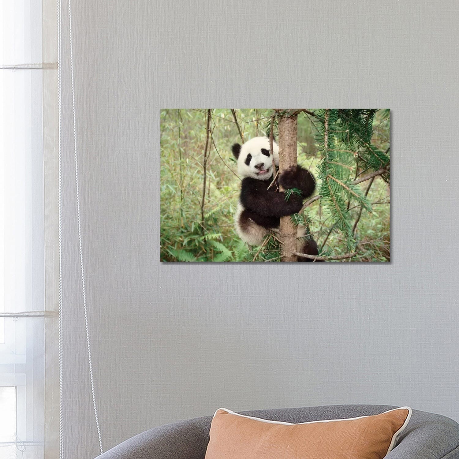 iCanvas "Giant Panda Cub Climbs A Tree, Wolong Valley, Sichuan Province, China" by Keren Su