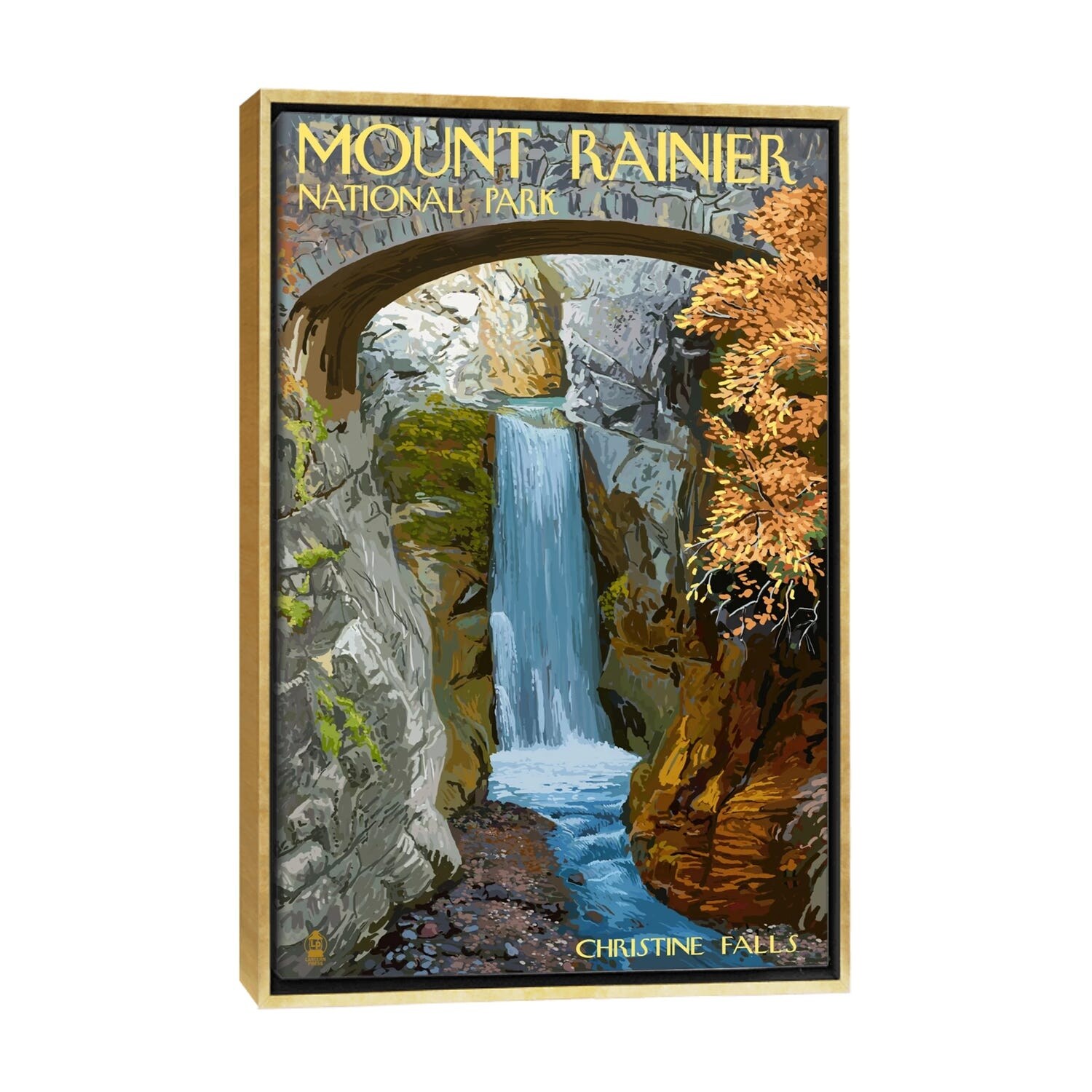 iCanvas "Mount Rainier National Park (Christine Falls)" by Lantern Press Framed Canvas Print