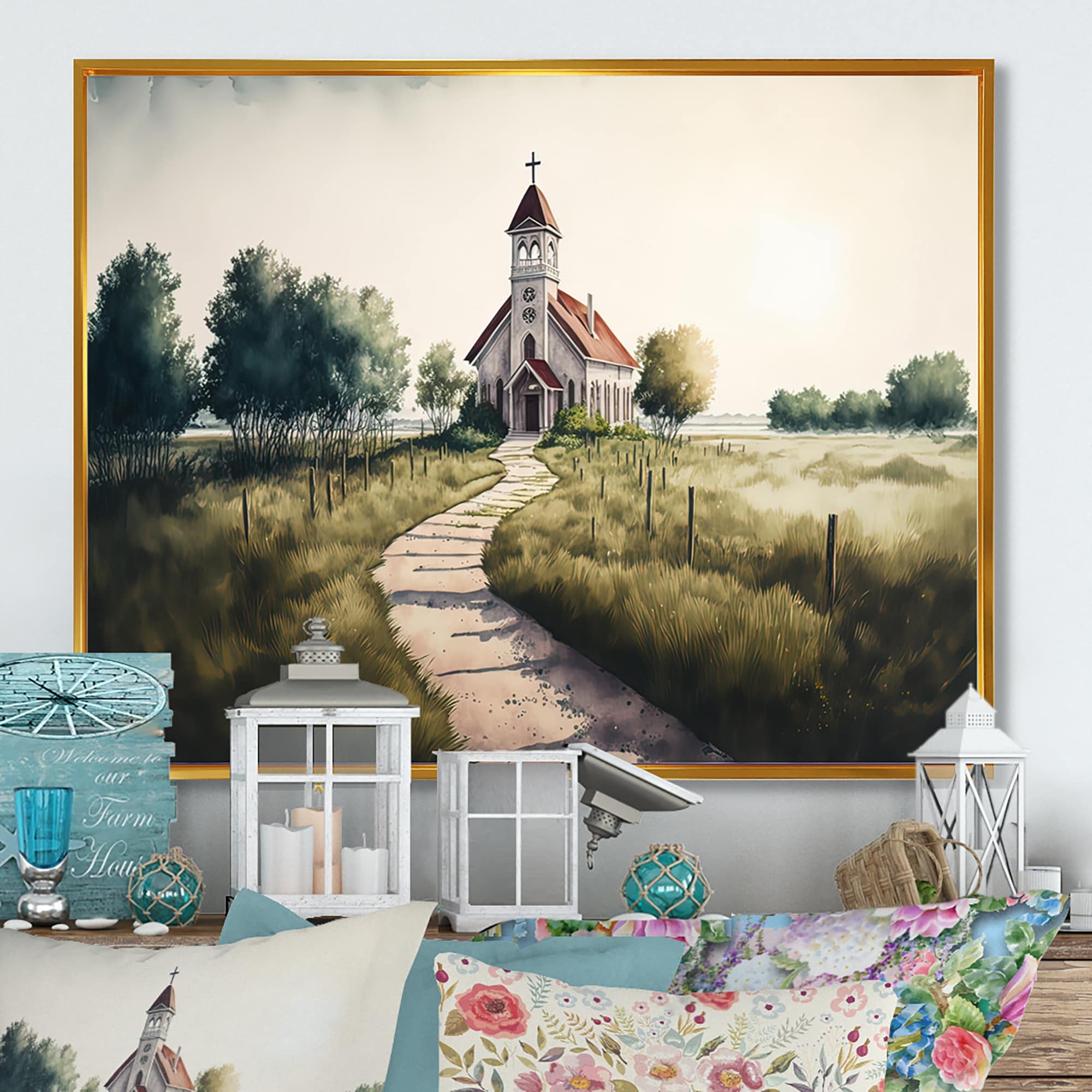 Designart "Winding Path to Church III" Spiritual Framed Canvas Art Print