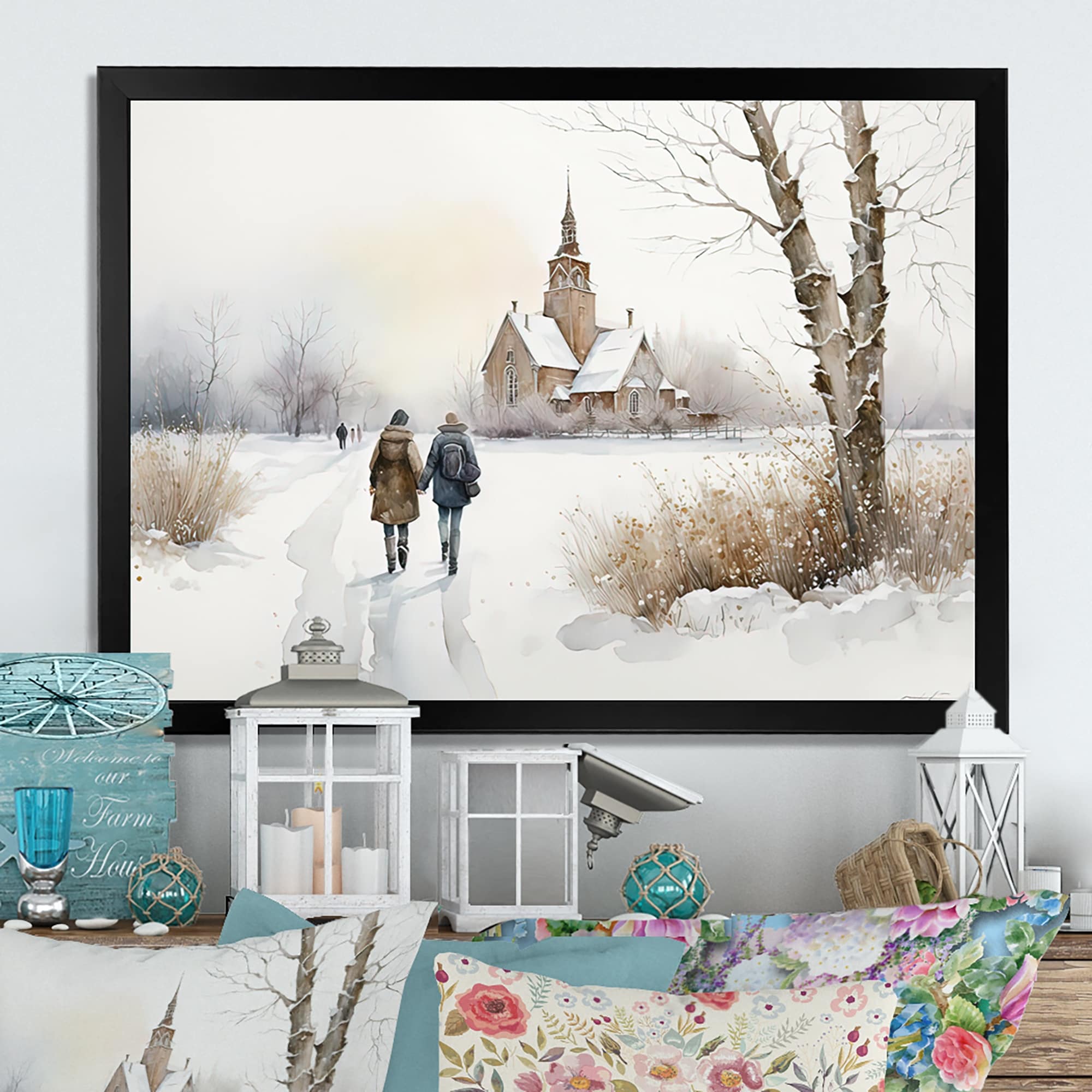 Designart "Couple In Love Going to the Church V" Spiritual Framed Canvas Art Print