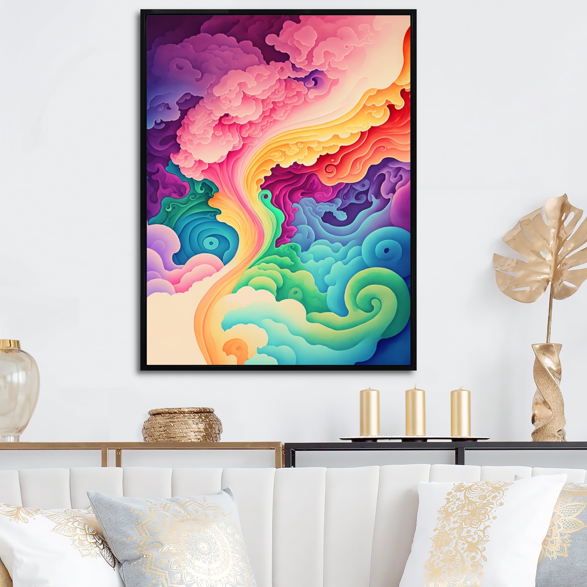 Designart "Multicolor Swirly Clouds II" Modern Framed Canvas Art Print