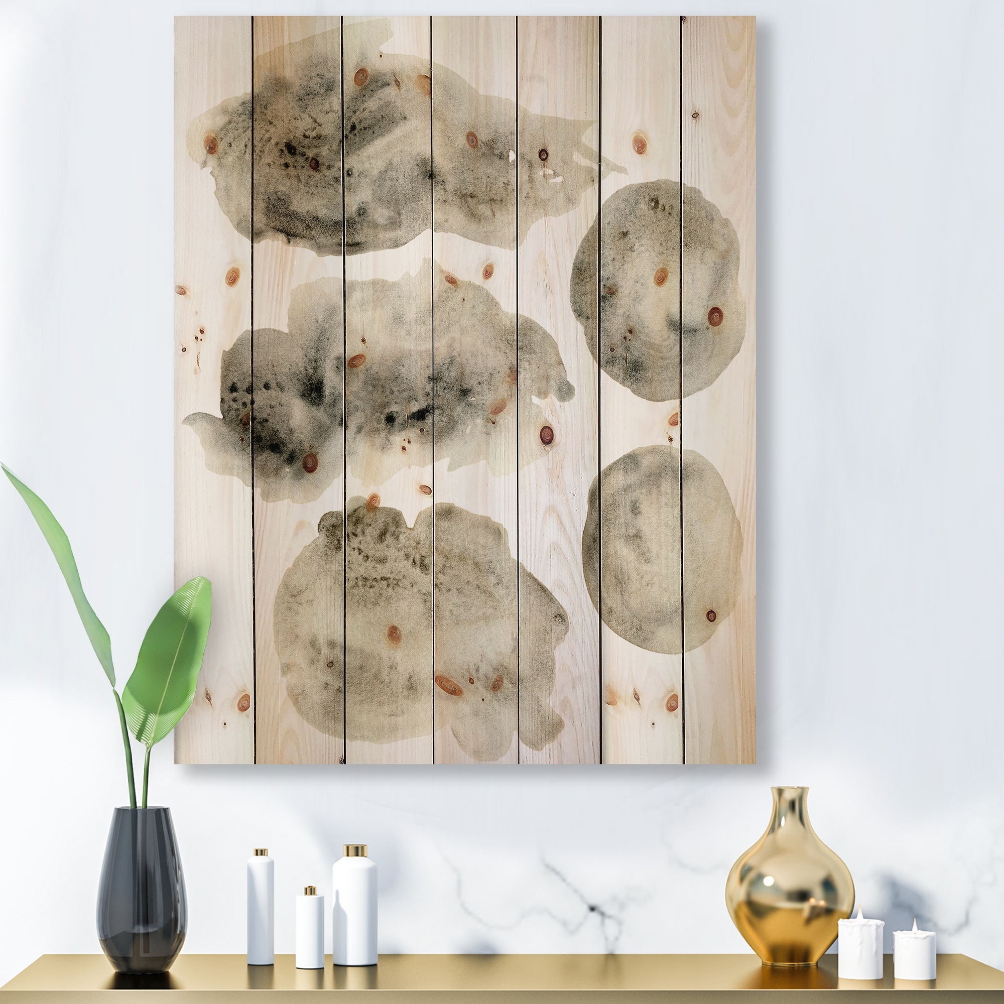Designart 'Grey and Golden Beige Clouds II' Modern Print on Natural Pine Wood