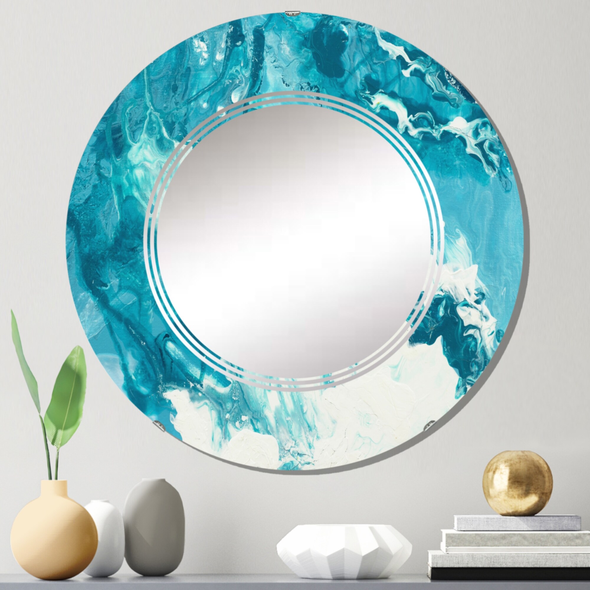 Designart 'White Clouds on Blue Marble II' Printed Modern Wall Mirror