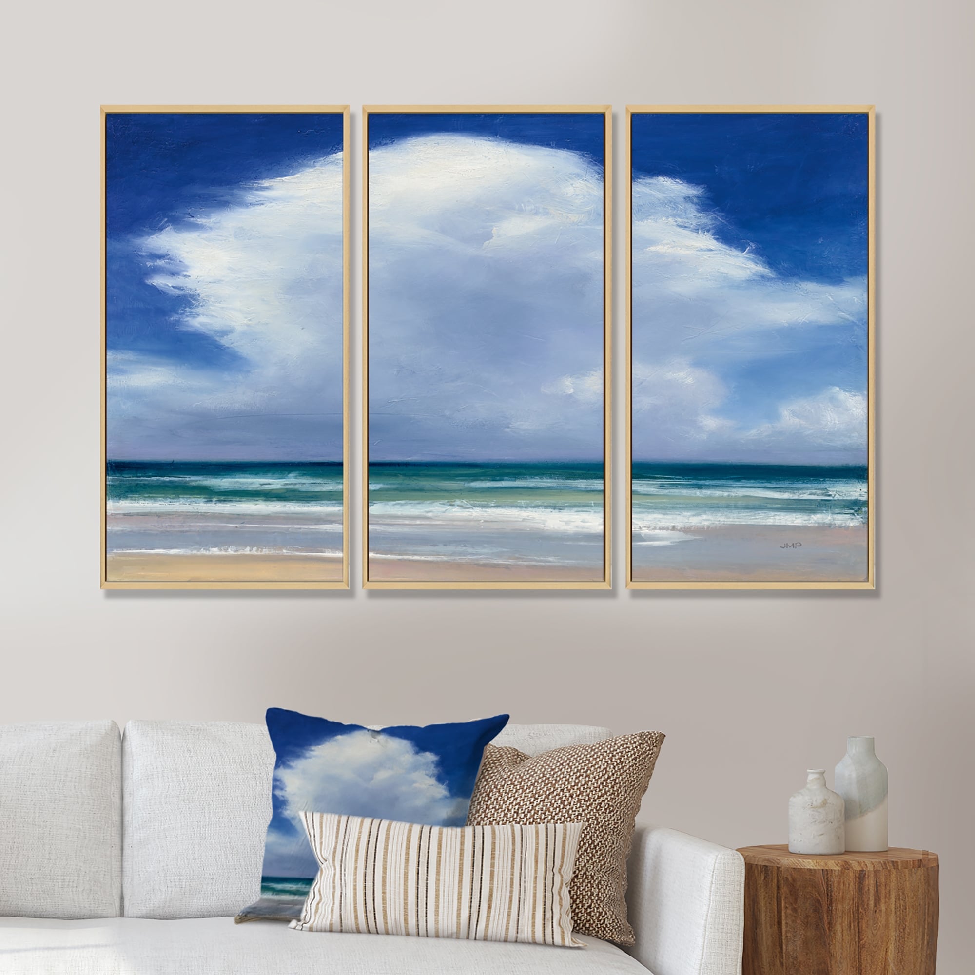 Designart "Beach Clouds II" Traditional Framed Wall Decor Set of 3 - 4 Colors of Frames