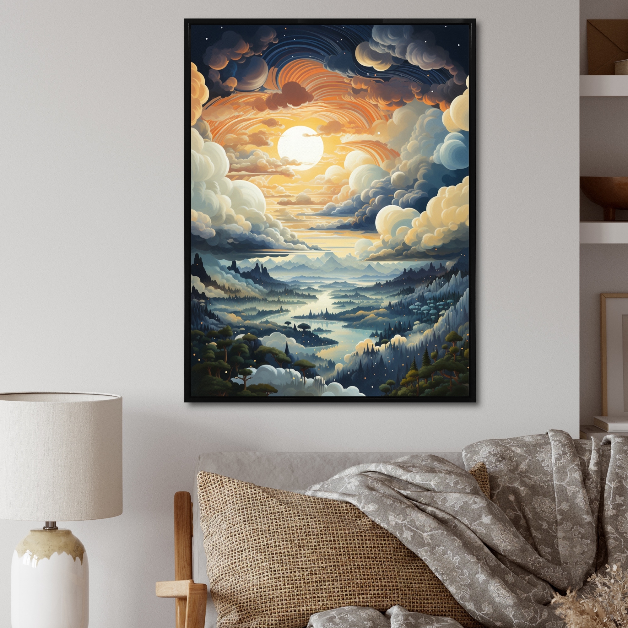 Designart "Futuristic Landscape Clouds II" Outer Space Framed Canvas Art Print