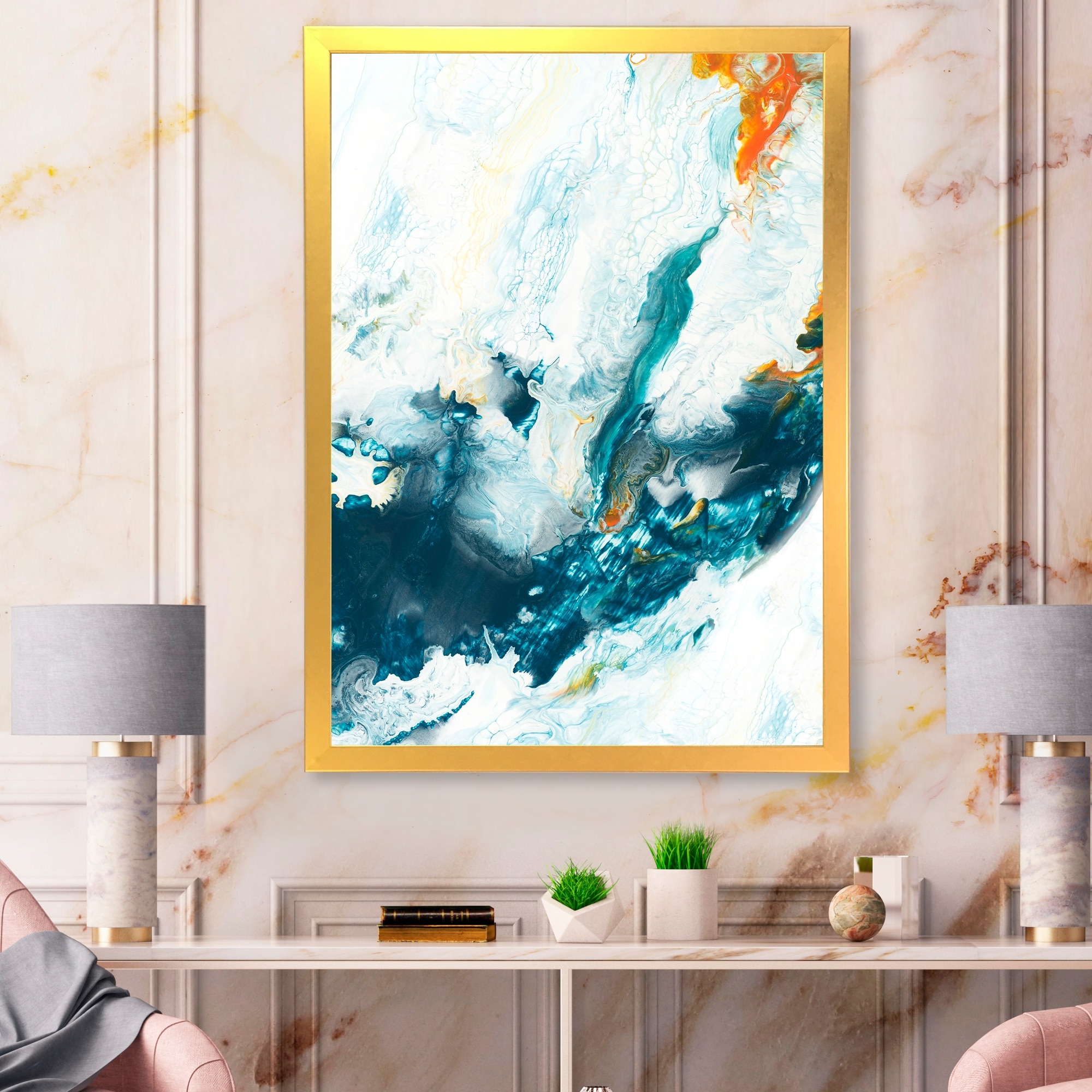 Designart "Blue And White Liquid Clouds Art II" Modern Framed Art Print