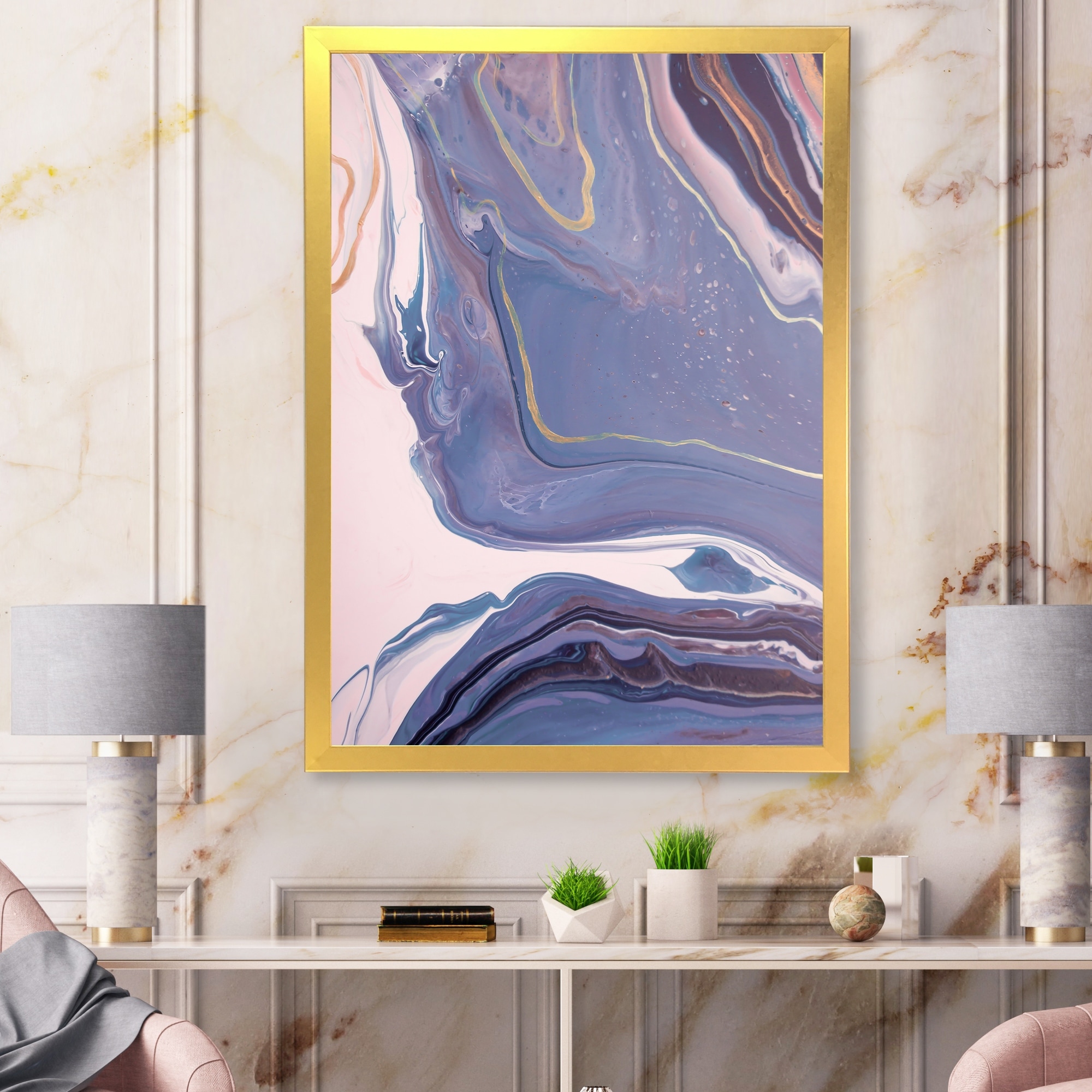 Designart "Purple And Grey Marble Ink Clouds II" Modern Framed Art Print