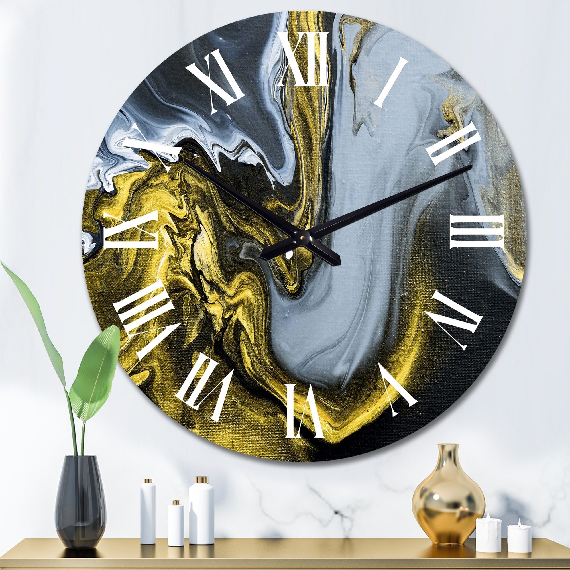 Designart 'Gold White And Yellow Marble Clouds II' Modern wall clock