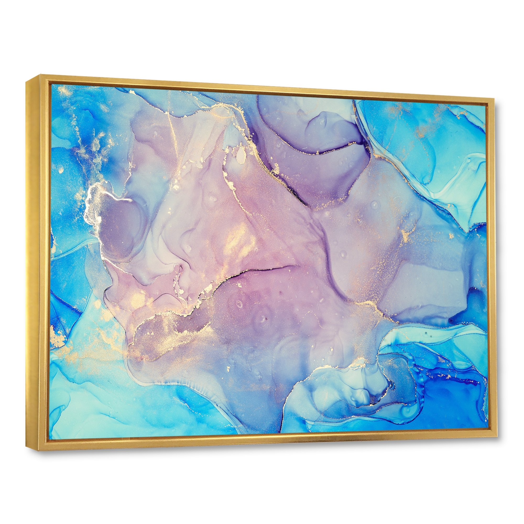 Designart "Blue And Pink Marble Ink Clouds II" Modern Framed Canvas Wall Art Print