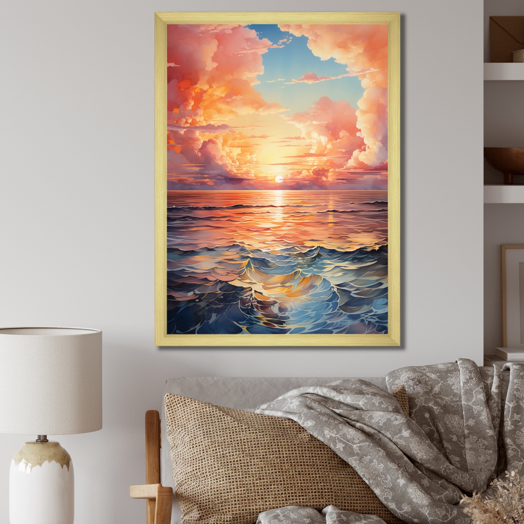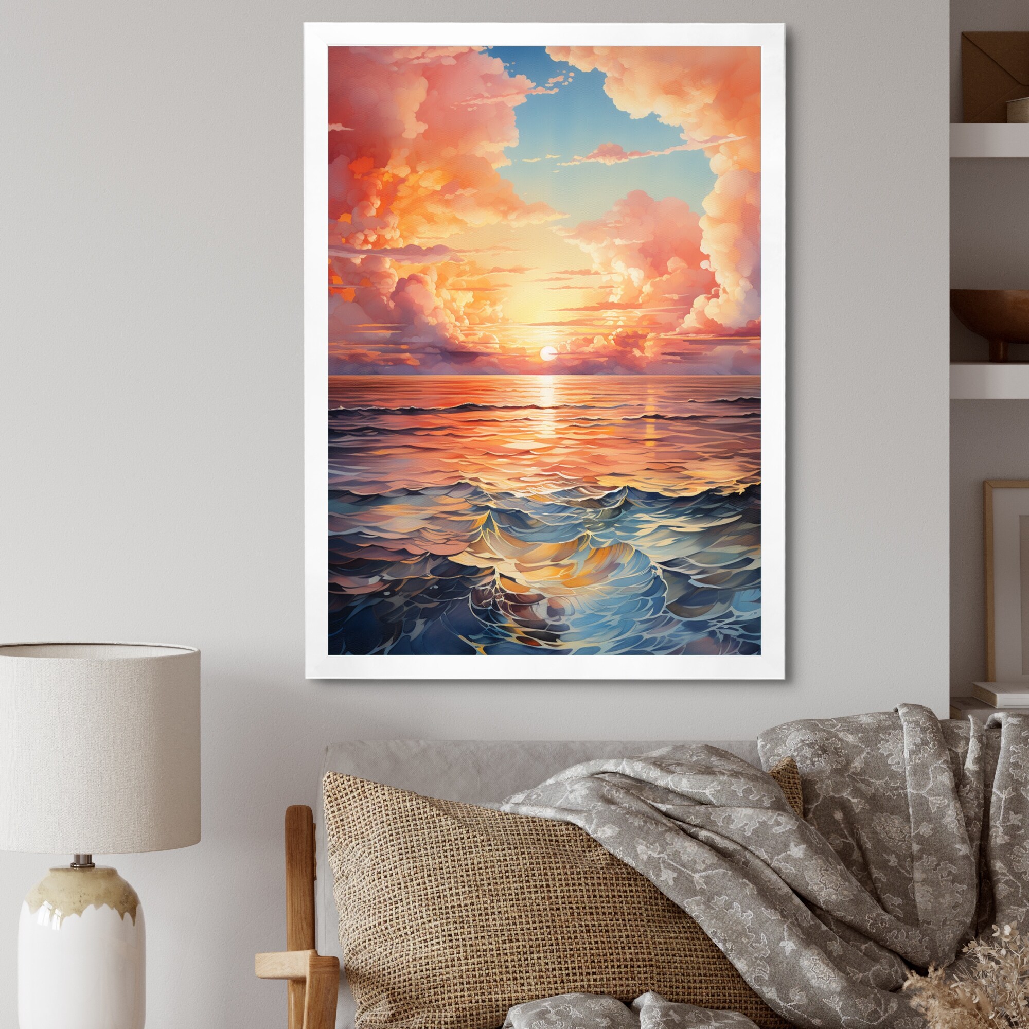 Designart "Panoramic Cloud And Sky At Sunset II" Nautical & Coastal Framed Wall Decor