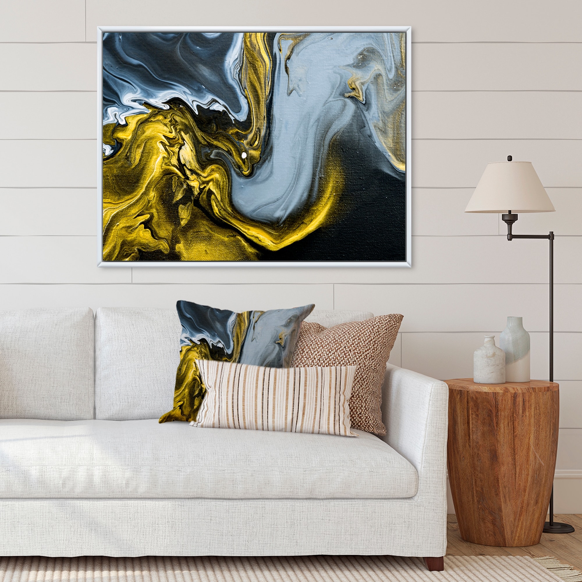Designart "Gold White And Yellow Marble Clouds II" Modern Framed Canvas Wall Art Print