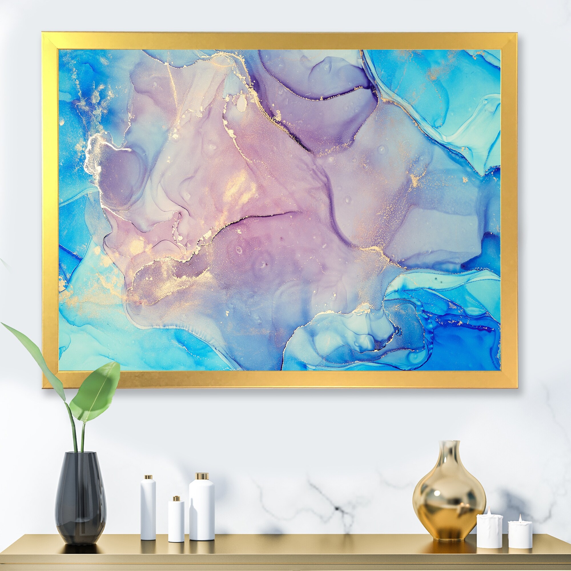 Designart "Blue And Pink Marble Ink Clouds II" Modern Framed Art Print