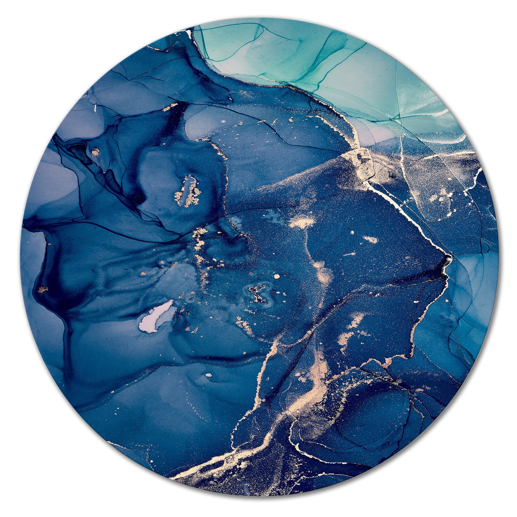 Designart 'Blue Ink Clouds II' Modern Metal Circle Wall Art