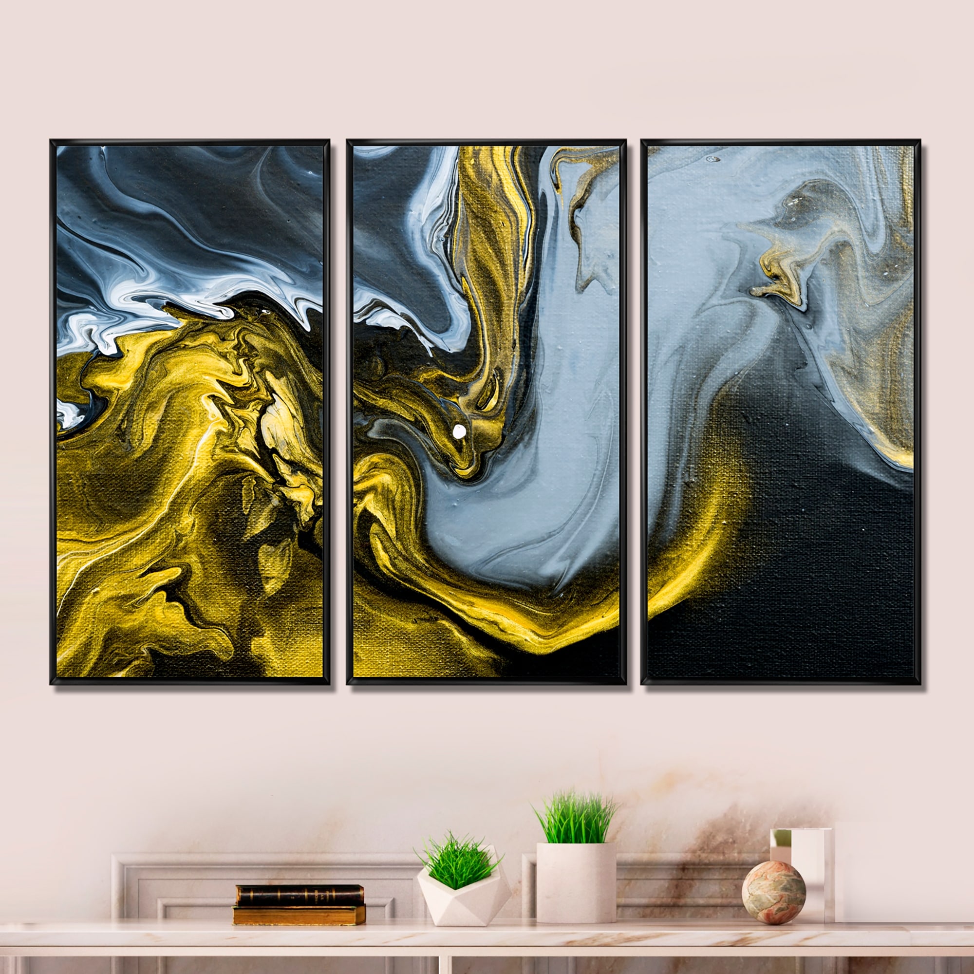 Designart "Gold White And Yellow Marble Clouds II" Modern Framed Canvas Wall Art Set of 3 - 4 Colors of Frames