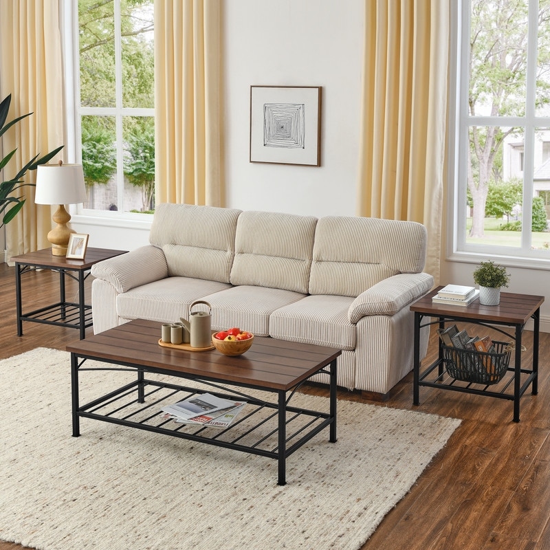 MJL Furniture Manhattan Espresso Fabric Upholstered Organizational Cocktail Ottoman Table