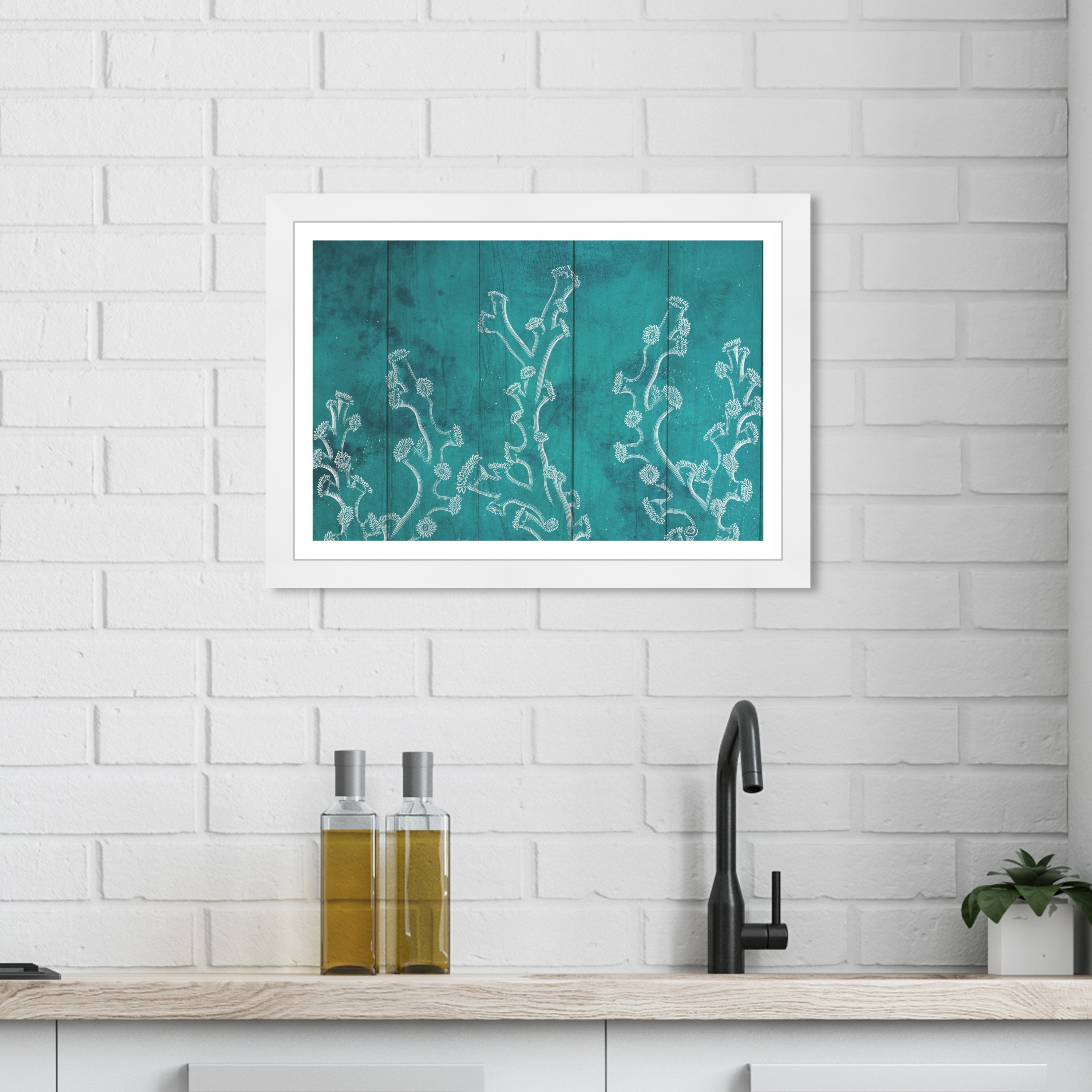 Wynwood Studio 'Coral Reef Turquoise' Nautical and Coastal Blue Wall Art Framed Print