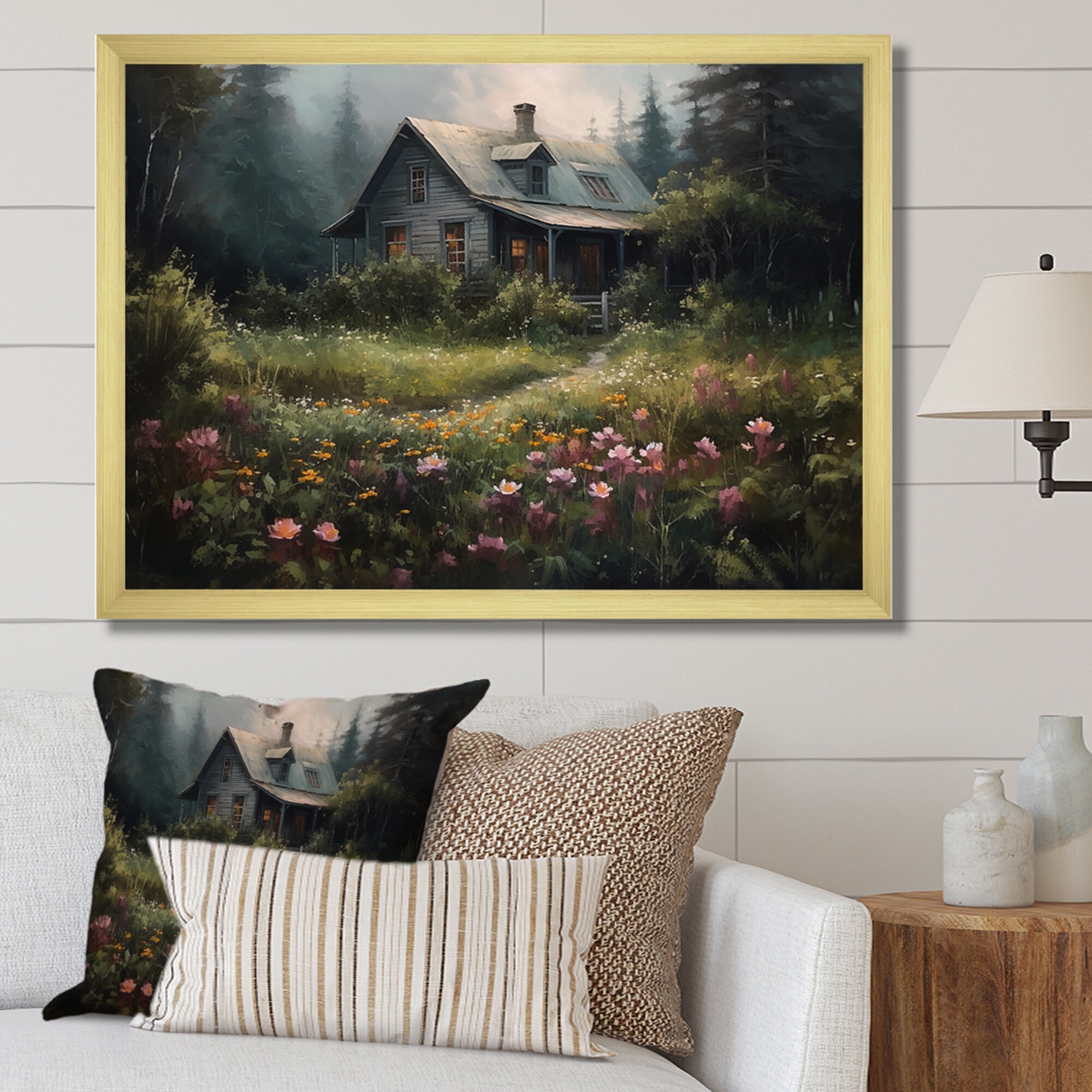 Designart "Quaint Cottage And Garden Oasis Iii" Cottage Landscape Framed Wall Art Prints