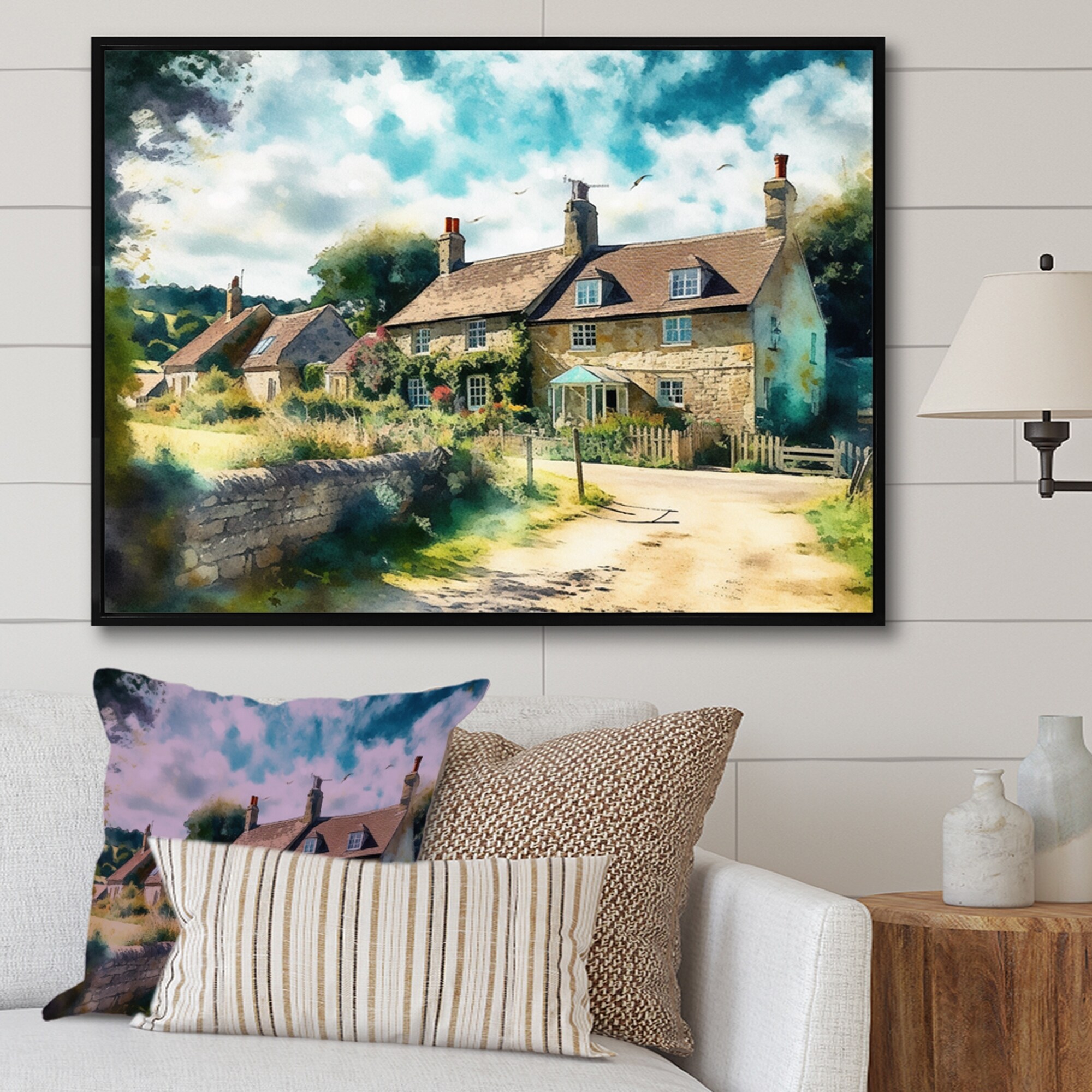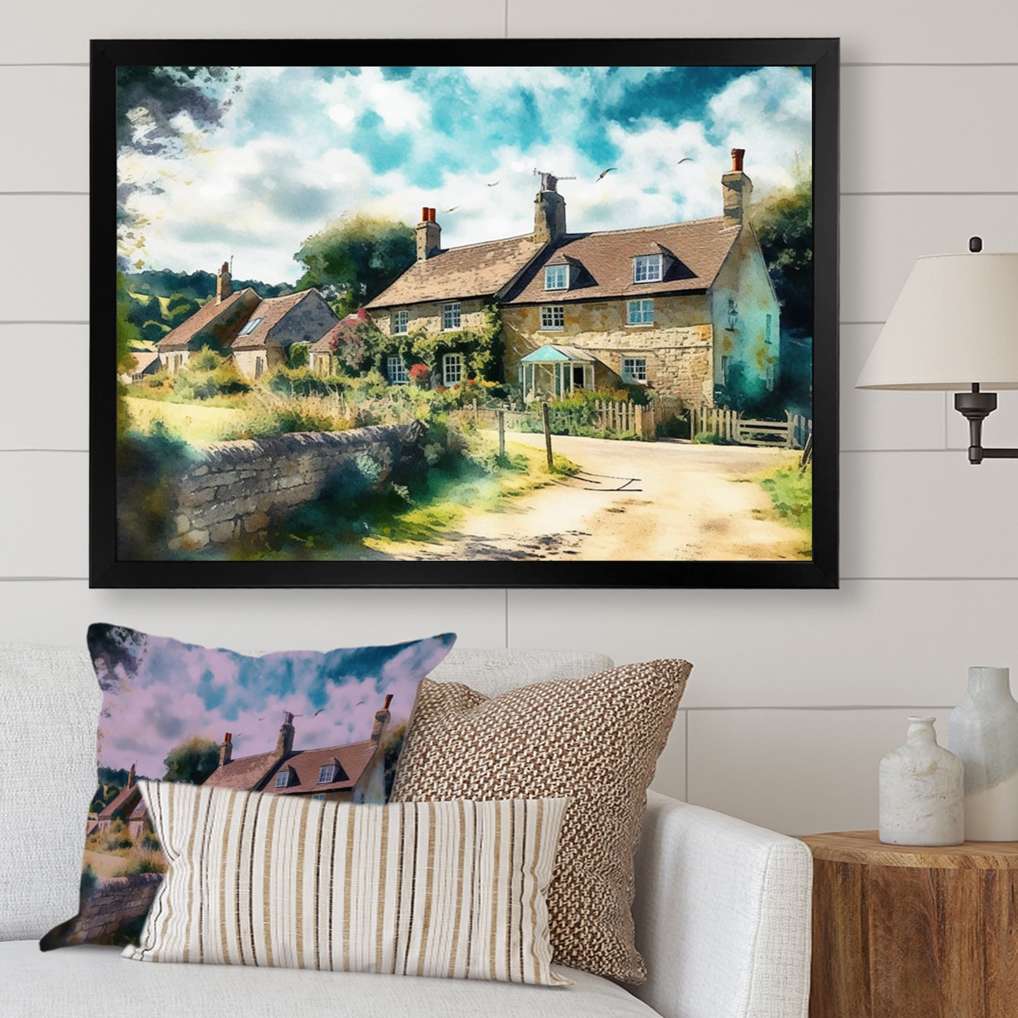 Designart "England Small Town Cottage Ii" Cottage Landscape Framed Canvas Wall Art