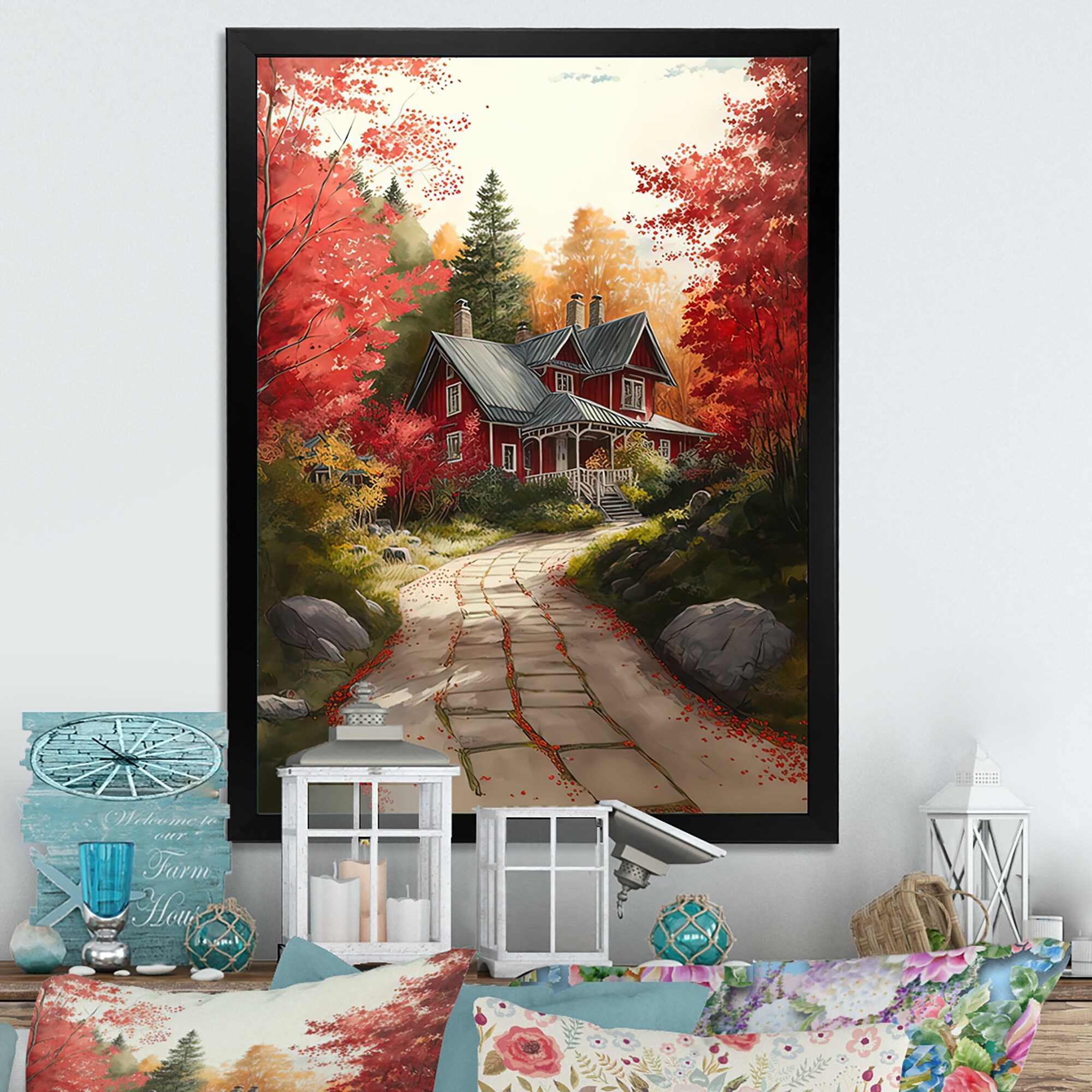 Designart "Fall Foliage to the Cottage II" Farmhouse / Country Framed Art Print