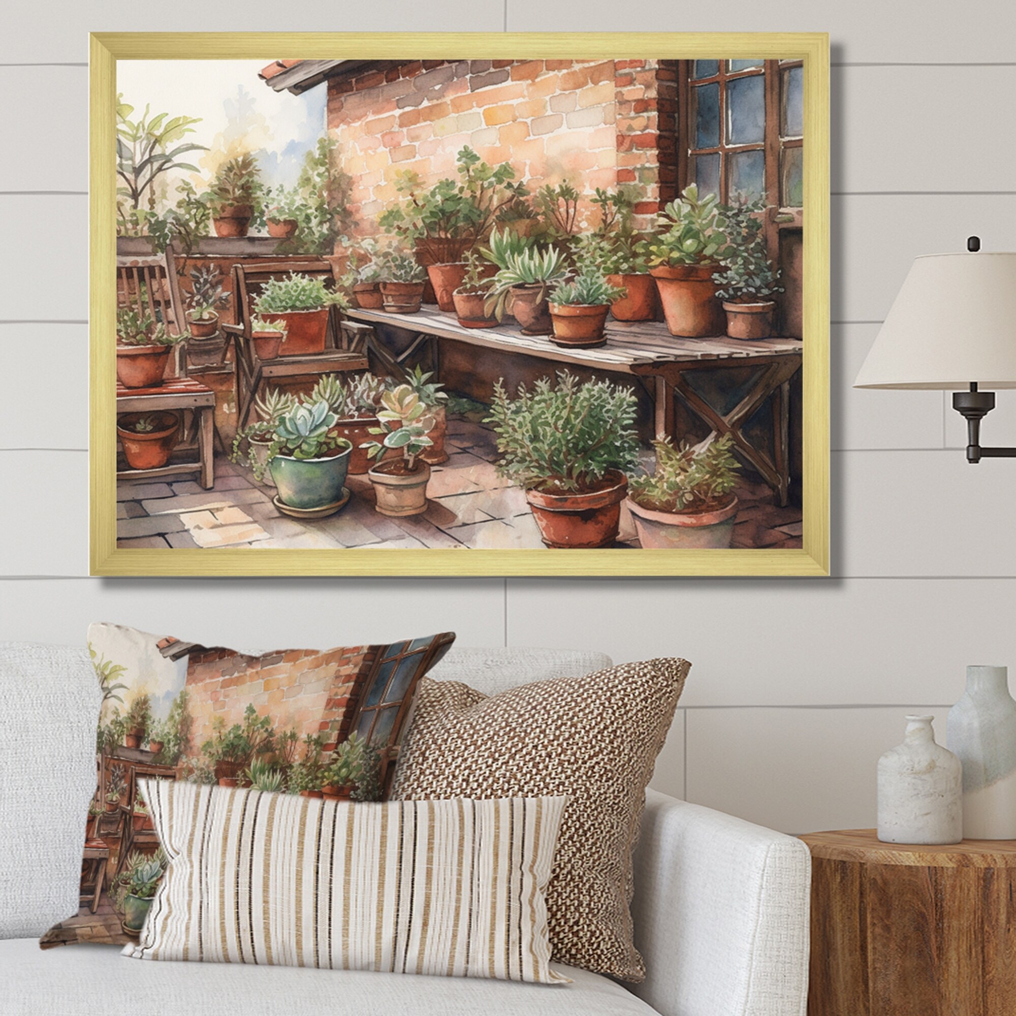 Designart "Cottage Balcony Garden V" Cottage Landscape Framed Canvas Print