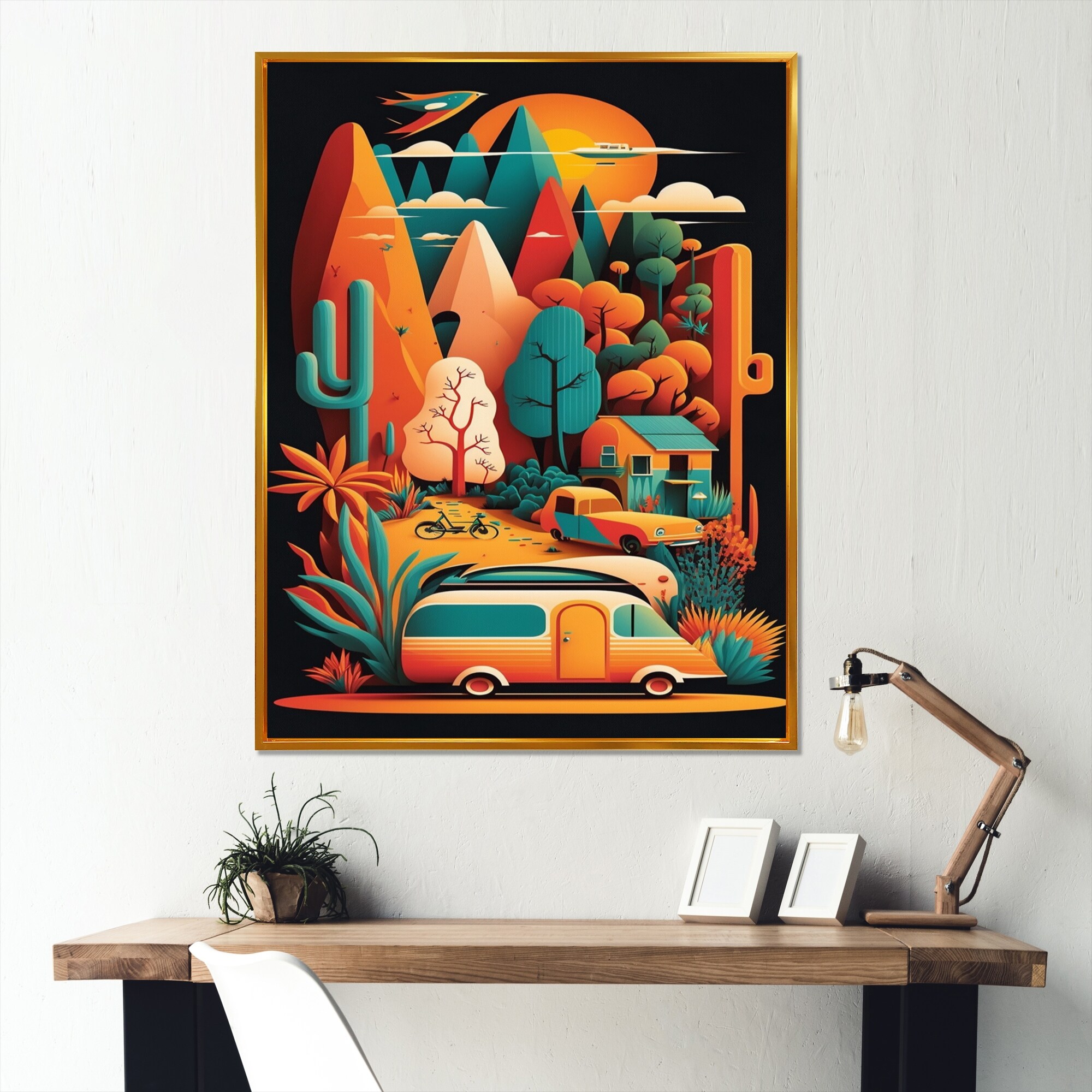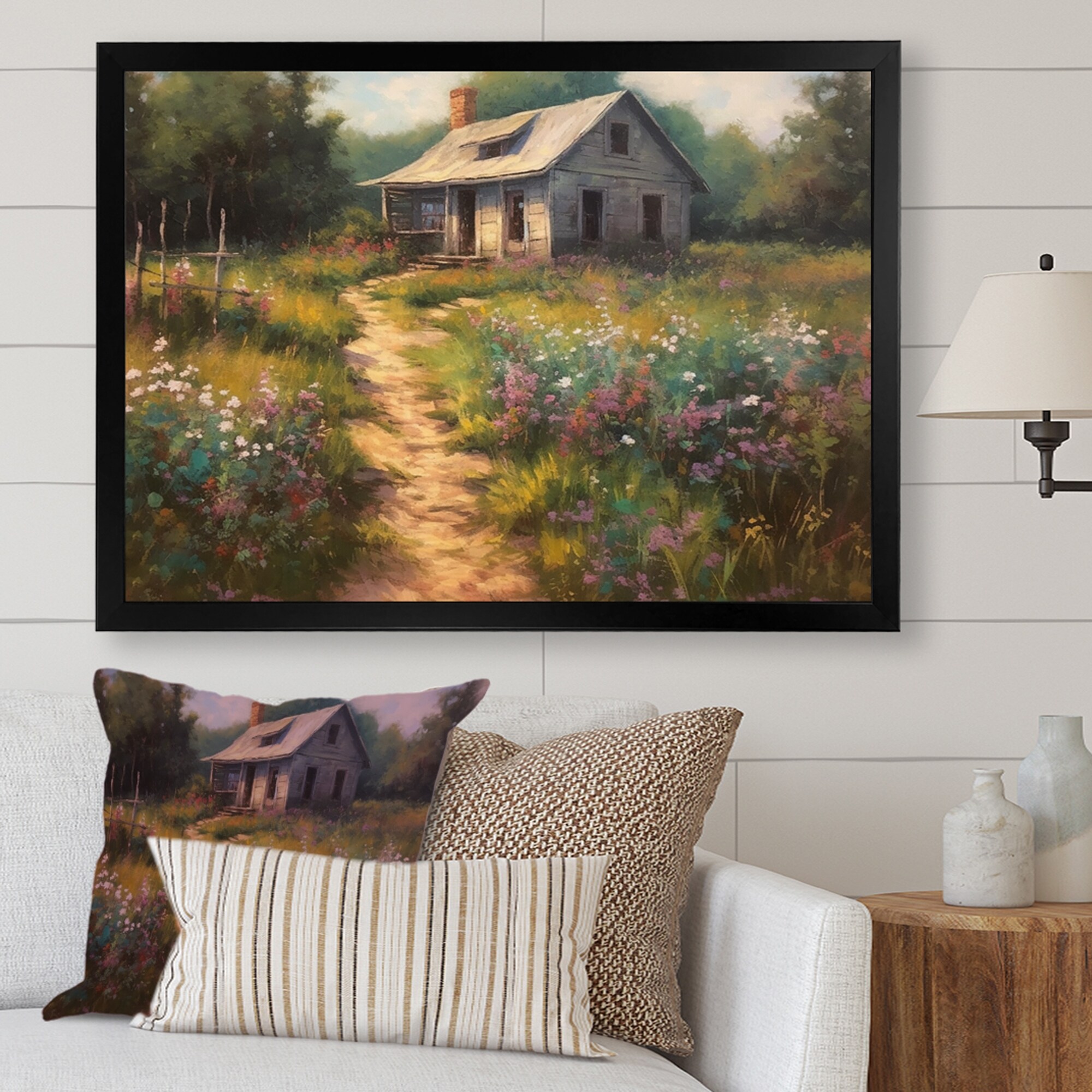 Designart "Colorful Cottage Landscape" Cottage Landscape Framed Canvas Art Print