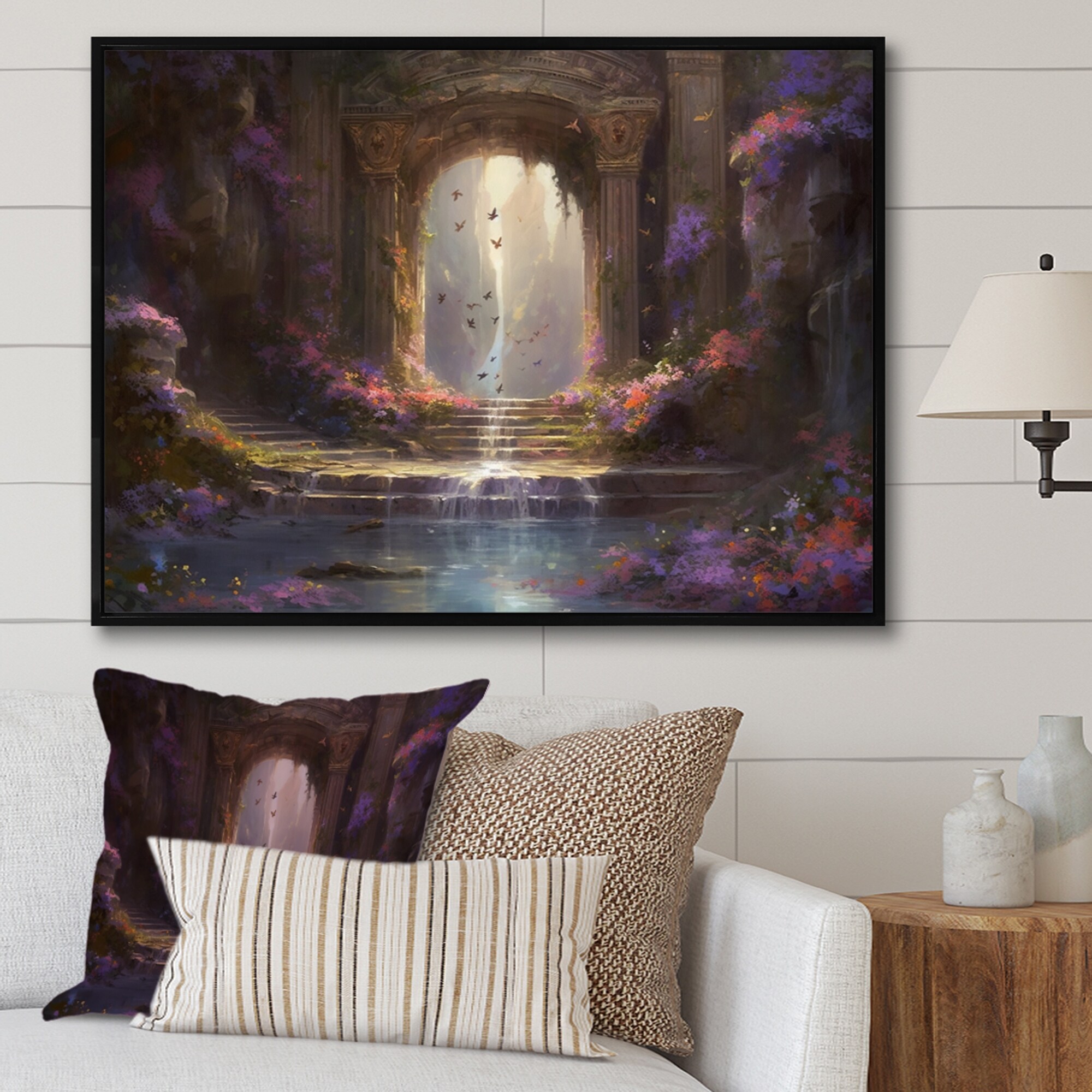Designart "Under Water Cave Oasis" Cottage Landscape Framed Canvas Art Print