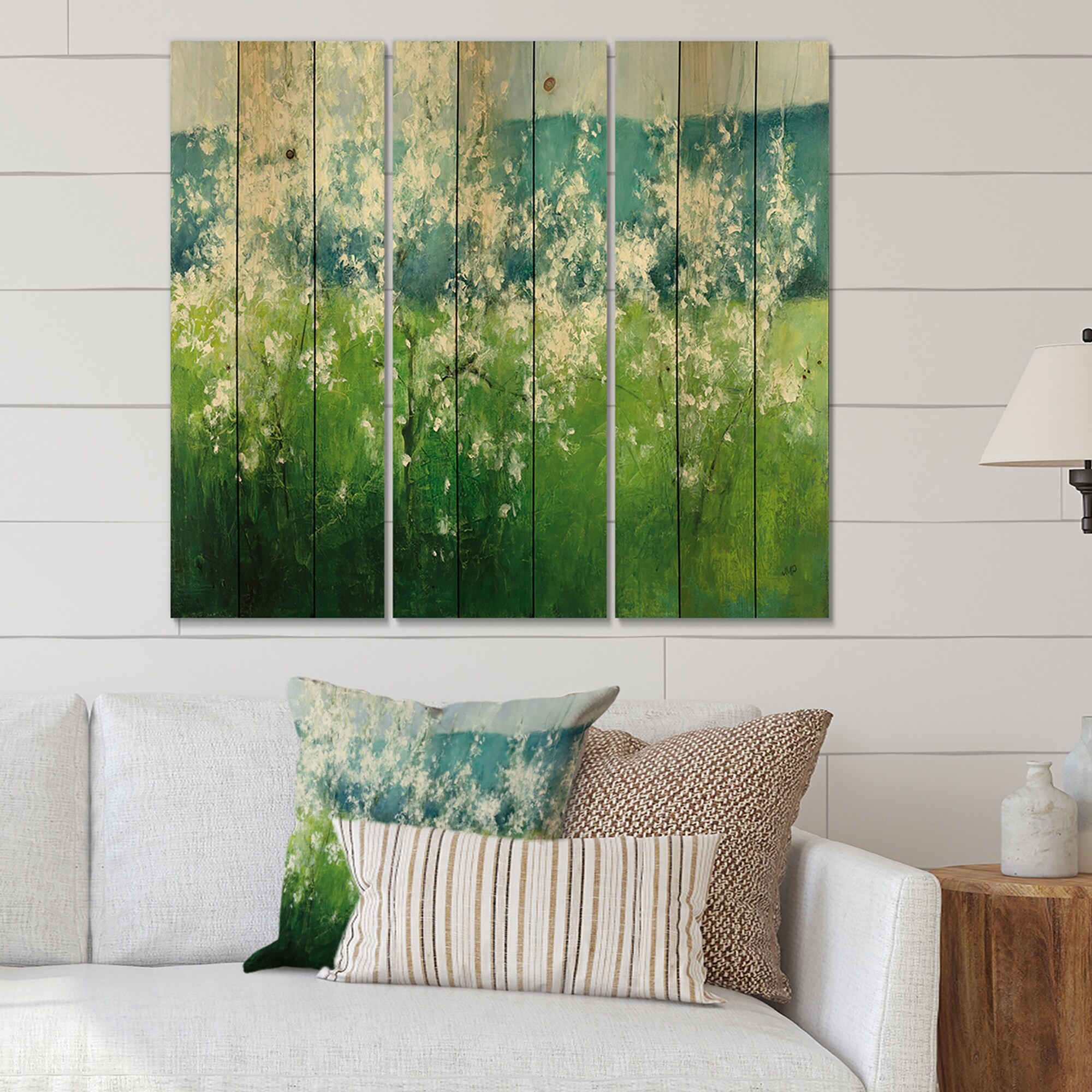 Designart 'Green Mountain Spring' Cottage Print on Natural Pine Wood - 3 Panels