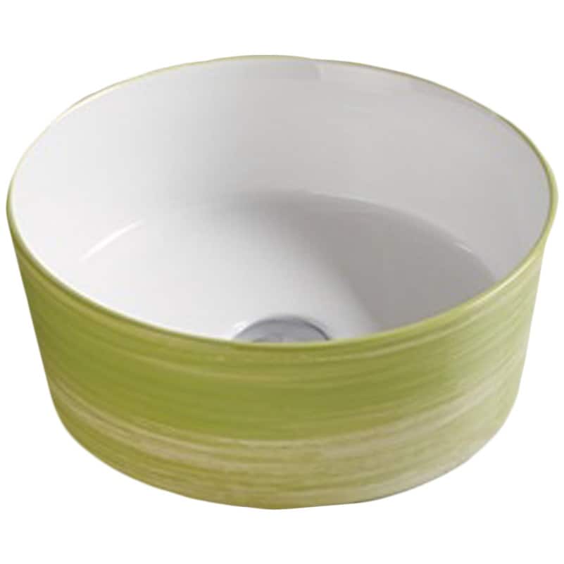 14.09-in. W Above Counter Olive Swirl-White Vessel for Deck Mount Deck Mount Drilling