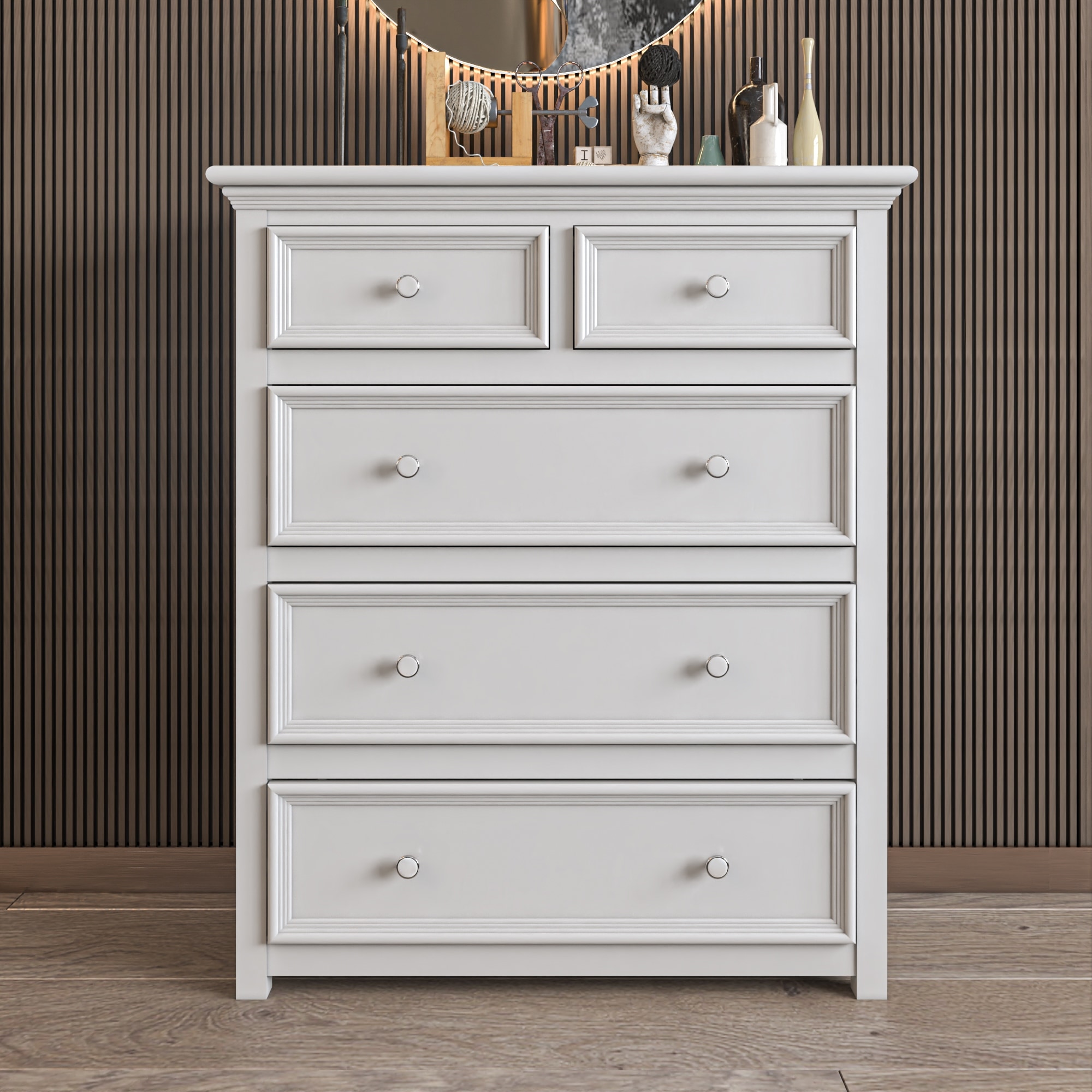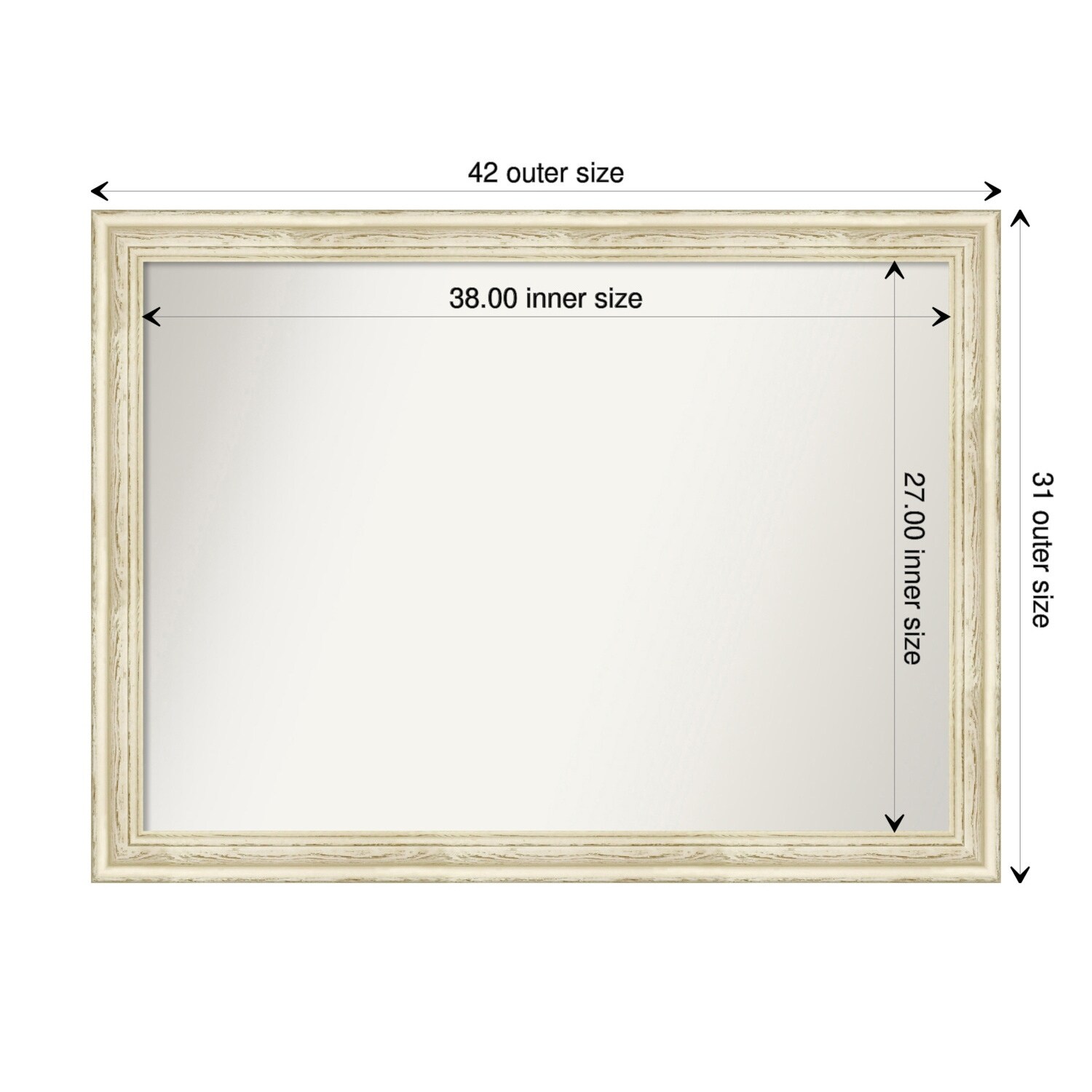 Non-Beveled Wood Bathroom Wall Mirror - Country White Wash Frame